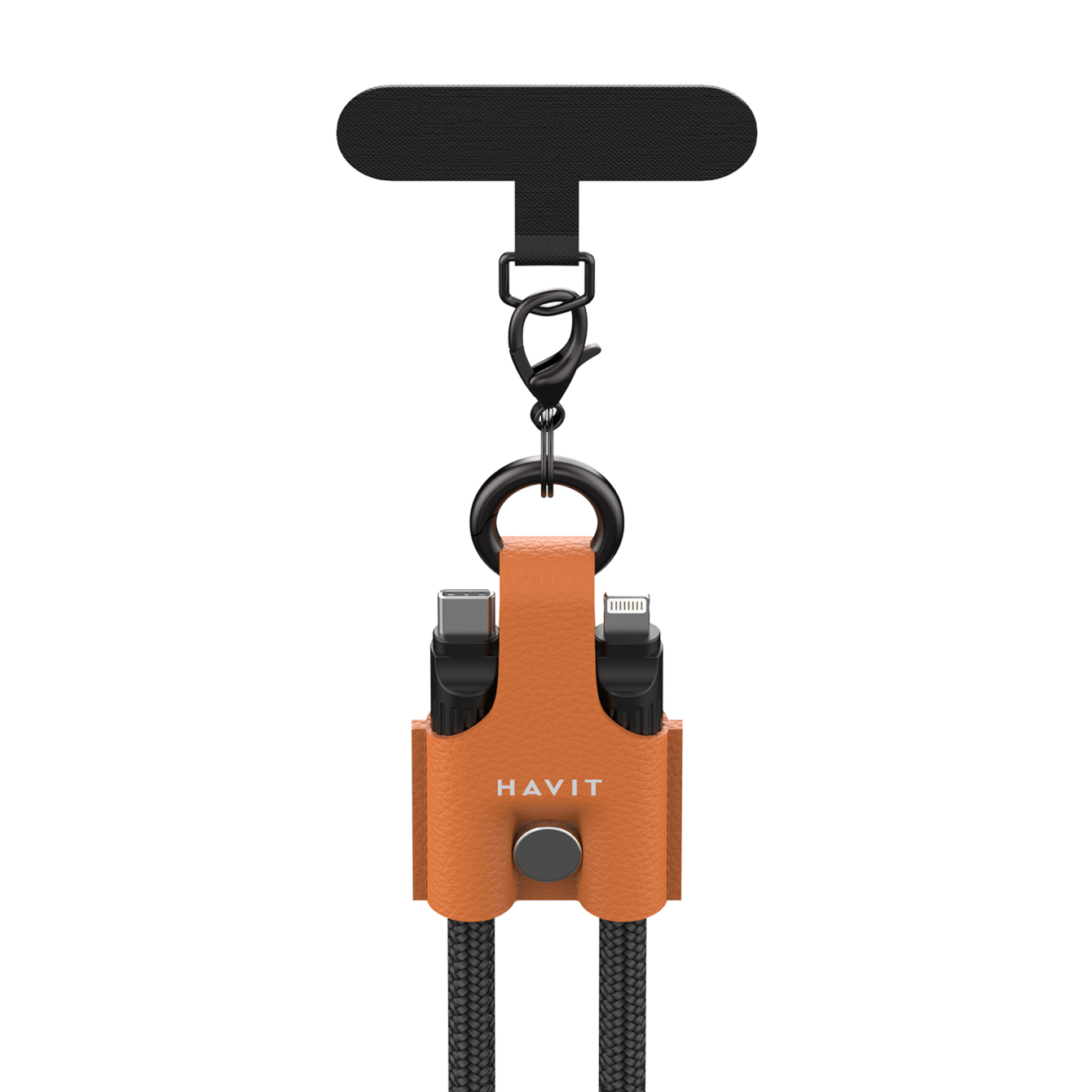 Зарядний кабель та ремінь для телефону 2в1 USB-C - Lightning HAVIT HV-CB6345 PD30W - призначений для швидкої та надійної зарядки, а також передачі даних та синхронізації. Підтримує протокол зарядки 10В, 3А (PD30W), що дозволяє заряджати такі пристрої як смарт-годинники, повербанки, планшети, смартфони та інші пристрої із сумісним зарядним портом і підтримкою швидкої зарядки. Так як більшість гаджетів зараз використовують зарядні порти типу USB-C, то перелік пристроїв для використання дуже великий та різноманітний. Кабель виготовлено з алюмінієвого сплаву, нейлонової обмотки та ПВХ. На виробі присутній спеціальний фіксатор для кріплення до телефону, що дозволяє використовувати ваш кабель за задумом в якості ременя через плече, який буде тримати телефон. Довжина кабелю становить 1.2 метри.