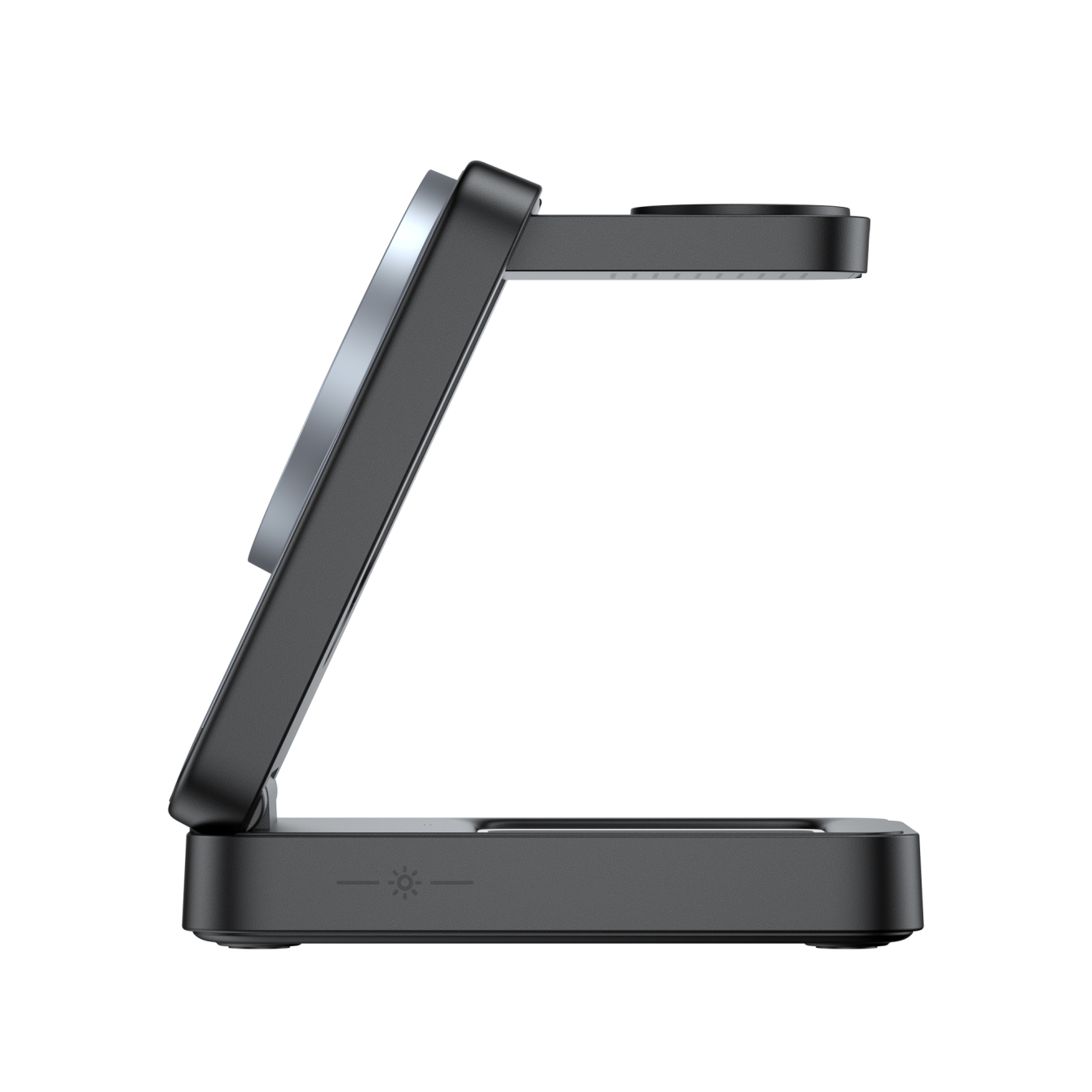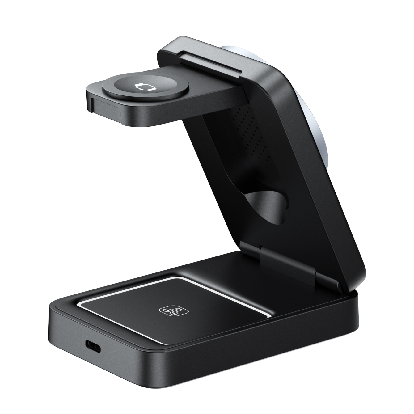 Настільна бездротова зарядка 3в1 HAVIT W3103 15W може одночасно заряджати 3 пристрої: смартфон, смарт-годинник та бездротові навушники. Передня частина корпусу оснащена магнітом, за допомогою якого смартфон легко кріпиться до зарядки. Навісна частина є місцем для заряджання годинника, а нижня частина – для зарядного кейсу навушників. Кут нахилу зарядки піддається регулюванню. Вона підтримує швидку зарядку і має потужність 15W для заряджання смартфону, сумісна також для телефонів з підтримкою 10W, 7.5W, 5W. Для смарт-годинника максимальна потужність 2.5W, а для навушників – 5W. Зарядка має функцію підсвітки для зони заряджання навушників, яку можна регулювати. Не займає багато місця, має складальну конструкцію і може використовуватися як в складеному вигляді, так і в розкладеному. Для зарядки годинника потрібно привести в розкладене положення і підняти зарядну зону з корпусу. Корпус виконаний з надійного та міцного пластику, який одразу відчувається в руці. Магнітний з’єднувач підтримує MagSafe від Apple та інших виробників. Важить приблизно 174г. В комплект разом з виробом входить зарядний кабель USB-C на USB-C та документація. Для повноцінної роботи пристрою та швидкої зарядки необхідно використовувати потужний адаптер живлення, який повинен відповідати параметрам – DC 5V/3A, 9V/3A, 12V/2.4A. Має вхідний роз’єм USB-C. Гарантійний термін виробу – 1 рік.