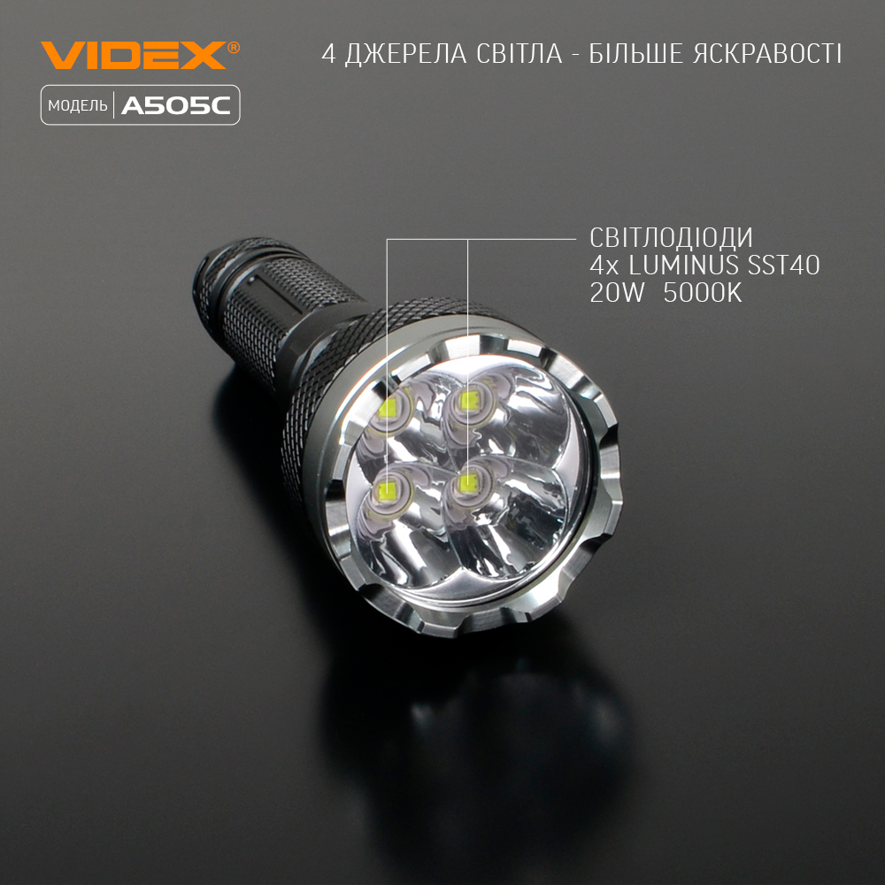 LED Portable Flashlight VIDEX VLF-A505C 5100Lm 5000K