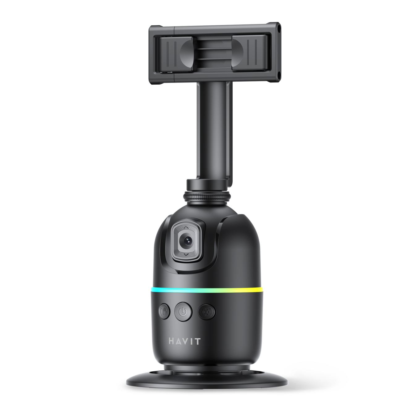 Бездротовий тримач для смартфону HAVIT ST7609 стане незамінним помічником для блогерів, тіктокерів, інфлюенсерів та інших медійних особистостей. Він не лише автоматично розпізнає людські обличчя, а й має функцію керування за допомогою жестів, чим полегшує процес зйомки фото чи відео. Деякими функціями можна керувати за допомогою кнопок на корпусі. Також тримач має функцію підсвітки.