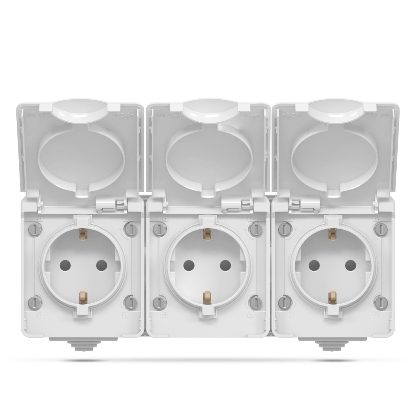 IP65 Розетка зовнішня потрійна із заземленням сіра VIDEX BINERA