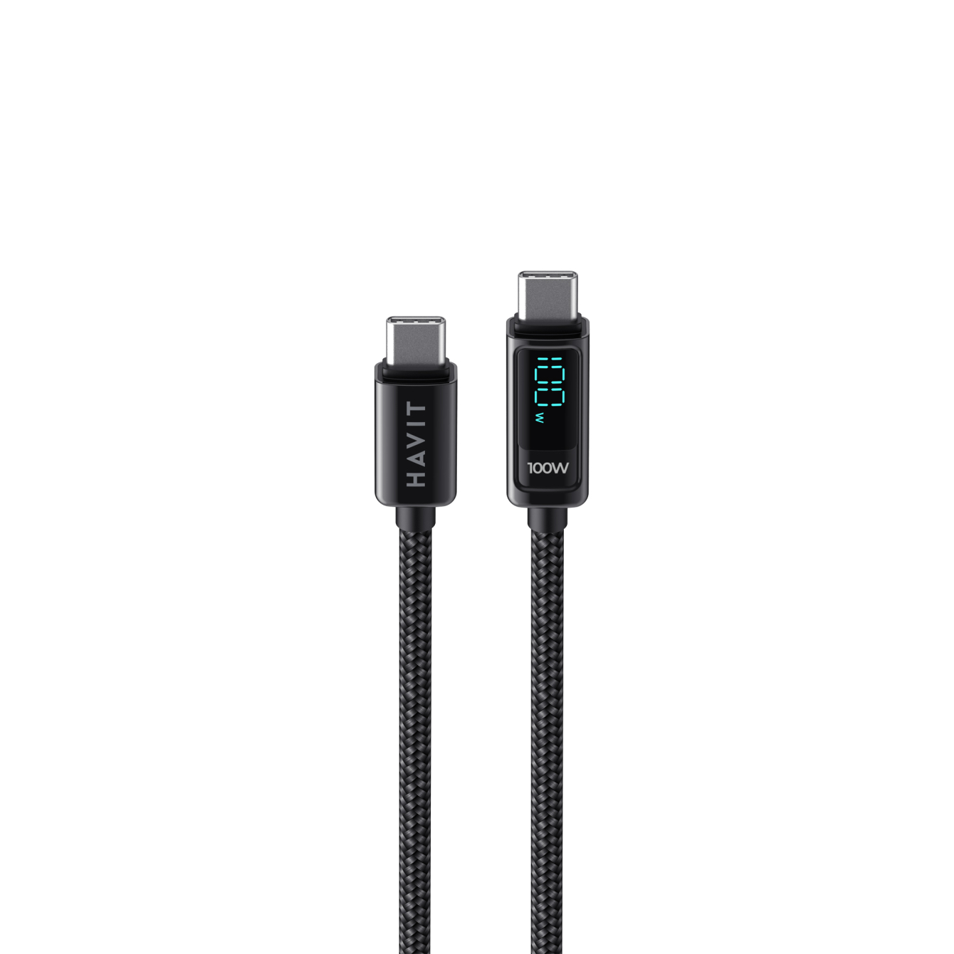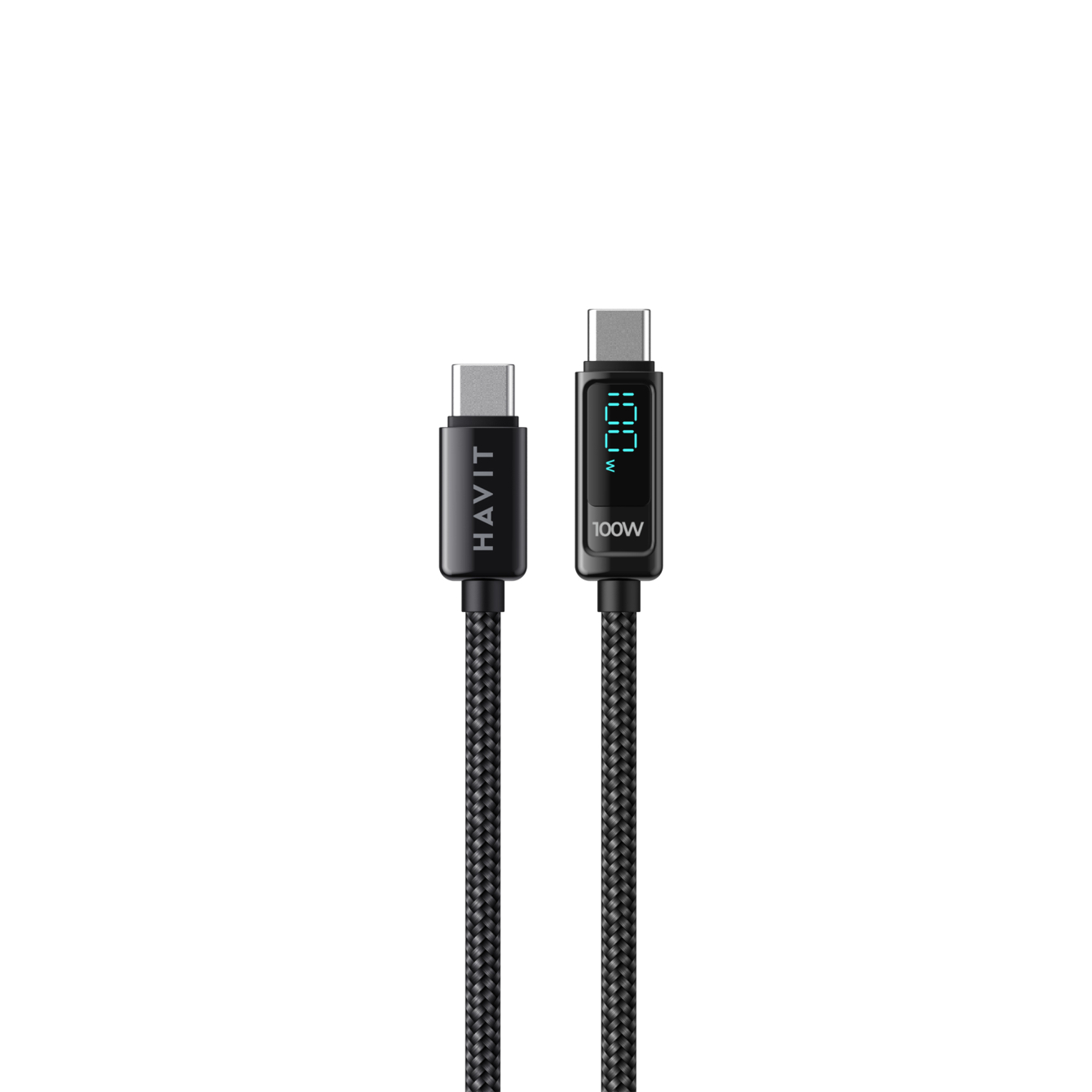 Кабель Type-C to Type-C HAVIT HV-CB6247 PD100W 5A 2м з LED екраном
