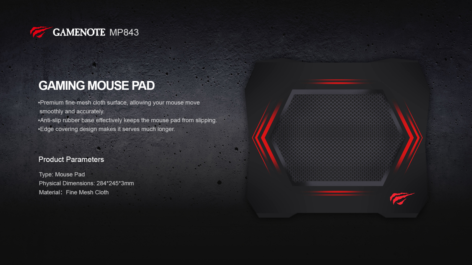 Підтримує всі типи сенсорних і лазерних мишок, а також всі типи роздільної здатності мишки (DPI). Килимок для миші виготовлений з шовкової тканини, і є дуже гладким на дотик. Не ковзає по поверхні столу завдяки гумовому покриттю зворотного боку.