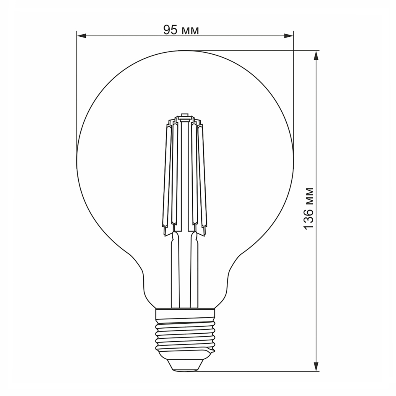 Світлодіодна лампа VIDEX Filament G95FD 7W E27 4100K дімерна призначена як для внутрішнього освітлення житлових приміщень, так і для зовнішнього використання. Ідеальна для декоративного, місцевого та спрямованого освітлення. Серія Filament по дизайну нагадує старі лампи розжарювання, але з використанням сучасних технологій. Всередині лампи знаходяться тонкі нитки світлодіодів, які виділяють мало тепла і не вимагають відводу тепла. Корпус виконаний зі скла, що робить лампу вразливою до падіння і ударів.