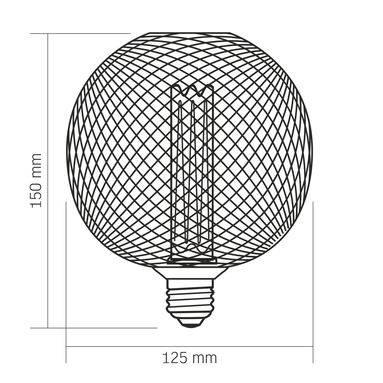 LED лампа VIDEX Filament VL-DBMC125150 4W E27 1800K Black Chainmail style – лампа з нашої дизайнерської колекції. Її чорна колба сфероподібної форми обгорнута металевим сітчастим абажуром, а внутрішня частина лампи містить спіральну нитку розжарювання у формі трубки, яка забезпечує тепле м'яке світло. Такий дизайн чудово підійде для інтер’єрів у стилі лофт або мінімалізму. А тепле світло (1800К), яке створює лампа, створюватиме затишну атмосферу. Виріб має тривалий строк служби (20 000 годин) і високий рівень енергоефективності (клас А), що дозволяє зекономити кошти на електроенергії. Гарантійний термін складає 3 роки.