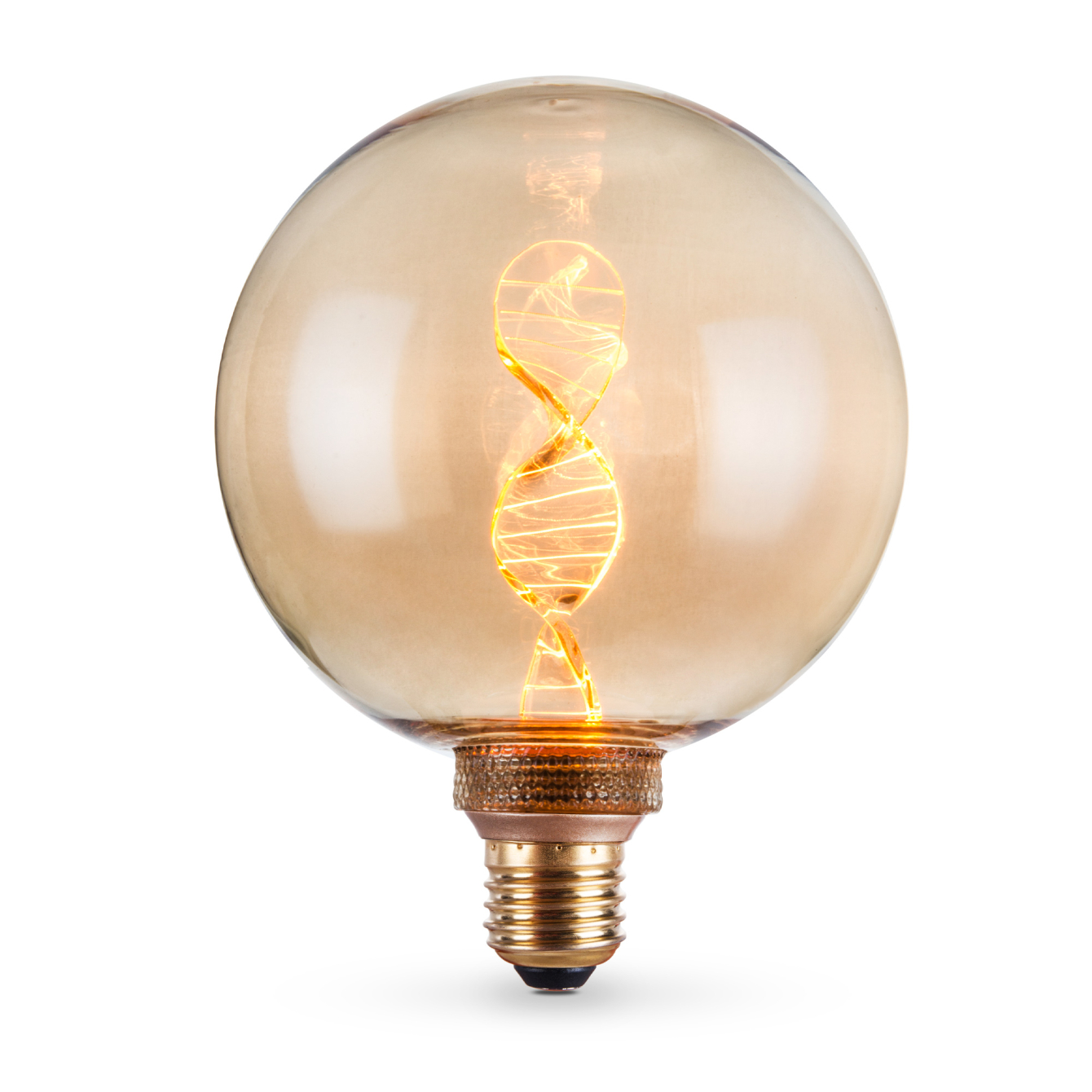 LED лампа VIDEX Filament VL-DNA-G125-A 3.5W E27 1800K Amber – лампа з нашої дизайнерської колекції. Даний виріб має форму великої прозорої кулі, в середині якої розташована спіральна світлодіодна нитка, що нагадує молекулу ДНК. LED лампа створює тепле світло (1800К), яке буде ідеальним рішенням для створення затишної атмосфери як у вашій спальні, вітальні, так і в ресторанах, кафе. Виріб має тривалий строк служби (20 000 годин) і високий рівень енергоефективності (клас А), що дозволяє зекономити кошти на електроенергію. Гарантійний термін складає 3 роки.