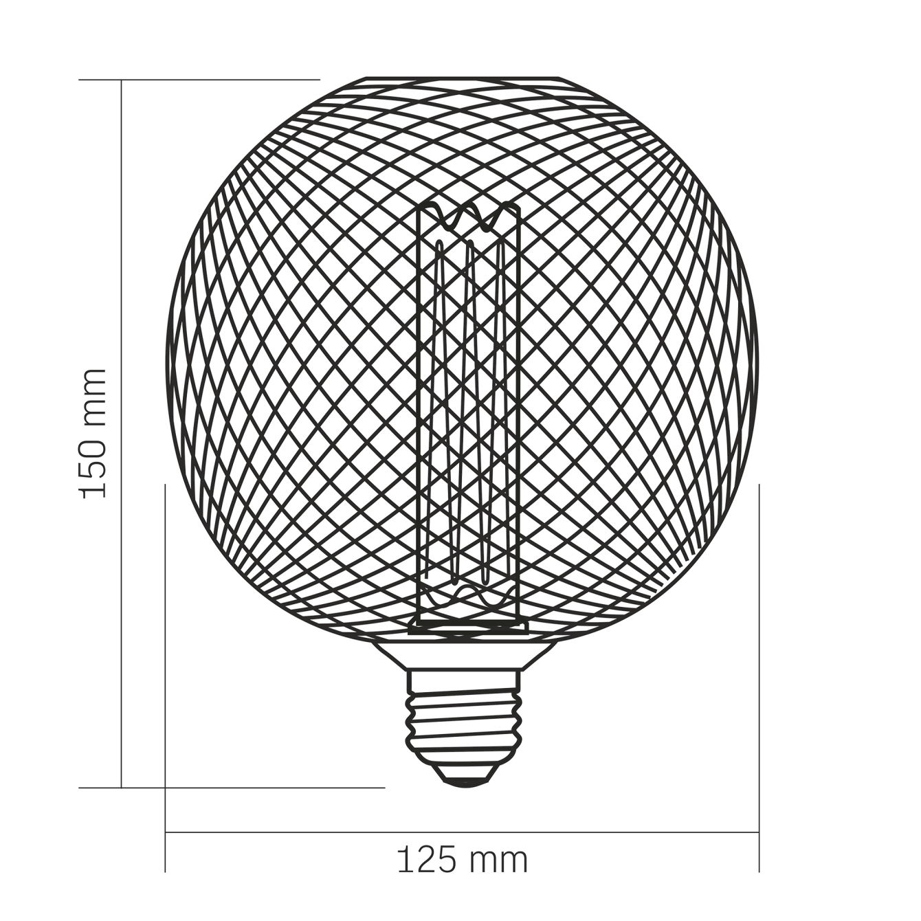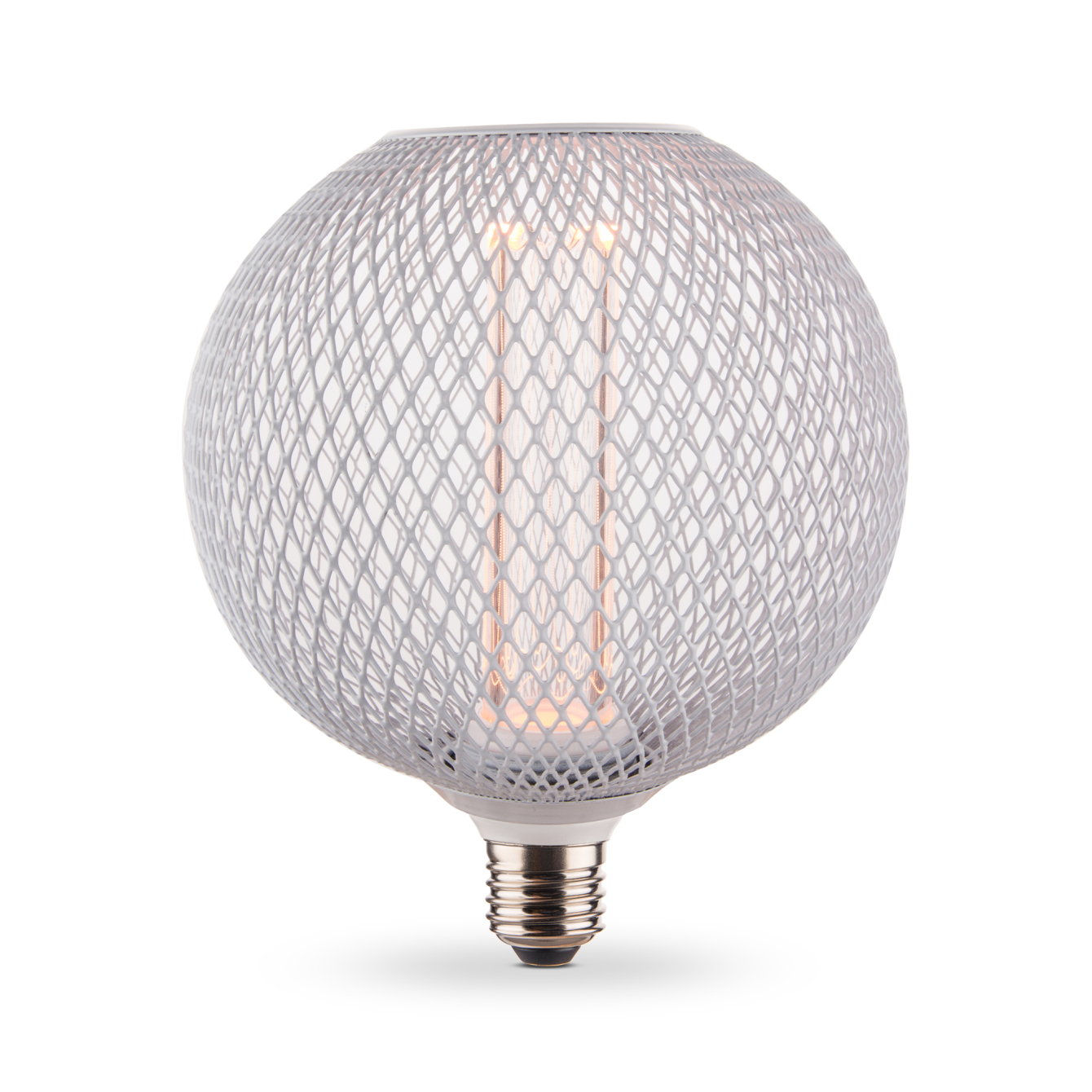LED лампа VIDEX Filament VL-DWMC125150 4W E27 1800K White Chainmail style – лампа з нашої дизайнерської колекції, корпус якої обгорнуто сітчастою металевою структурою, що нагадує кольчужну тканину. Тепле світло лампи (1800К) схоже на світло свічки або старовинних ламп розжарювання, яке чудово підійде для декоративного освітлення, у ресторанах, кафе, або в інтер'єрах, де потрібно створити релаксуючу та спокійну обстановку. Гарантійний термін виробу складає 3 роки.