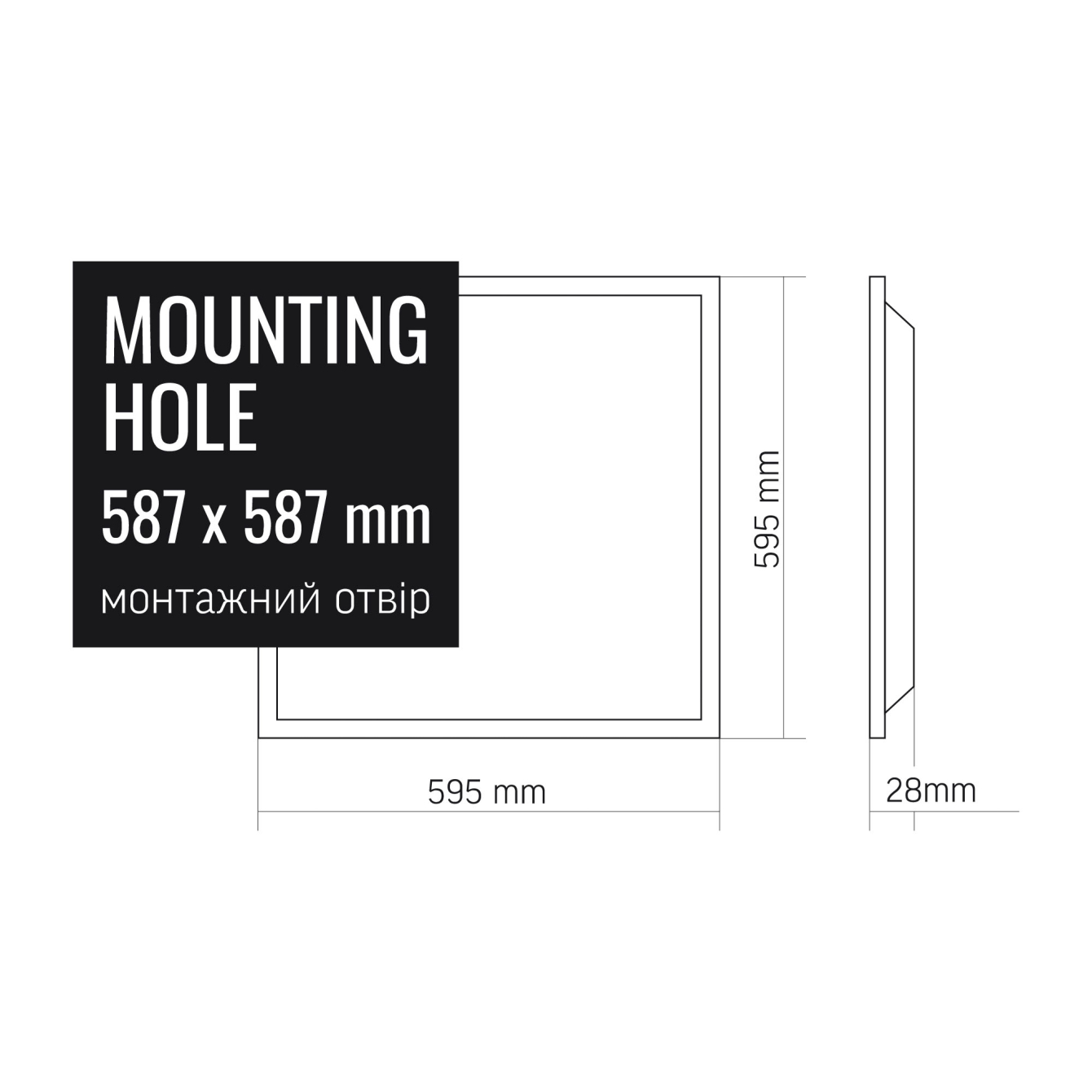 - Розміри:595mm х 595mm х 28mm