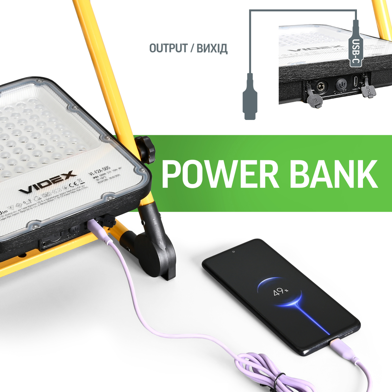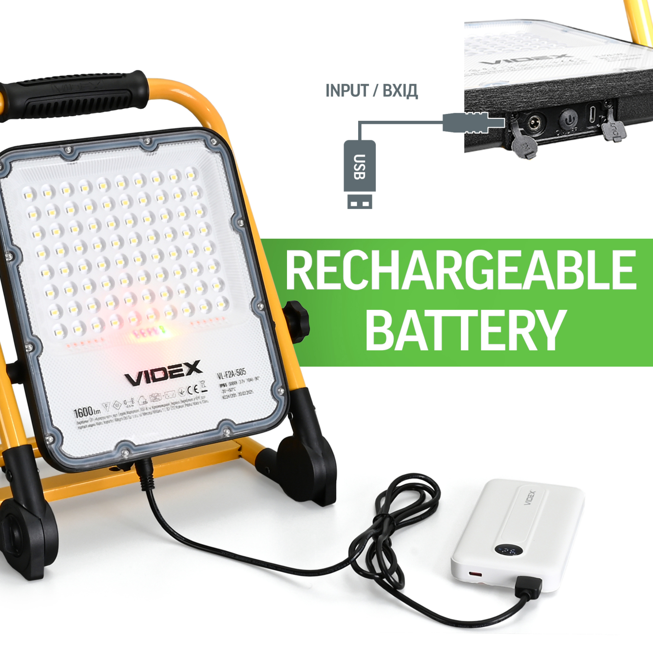 Світлодіодний LED прожектор акумуляторний PREMIUM VIDEX F2A 50W 5000K (VL-F2A-505) легкий у переміщенні та не потребує постійного підключення до електромережі.