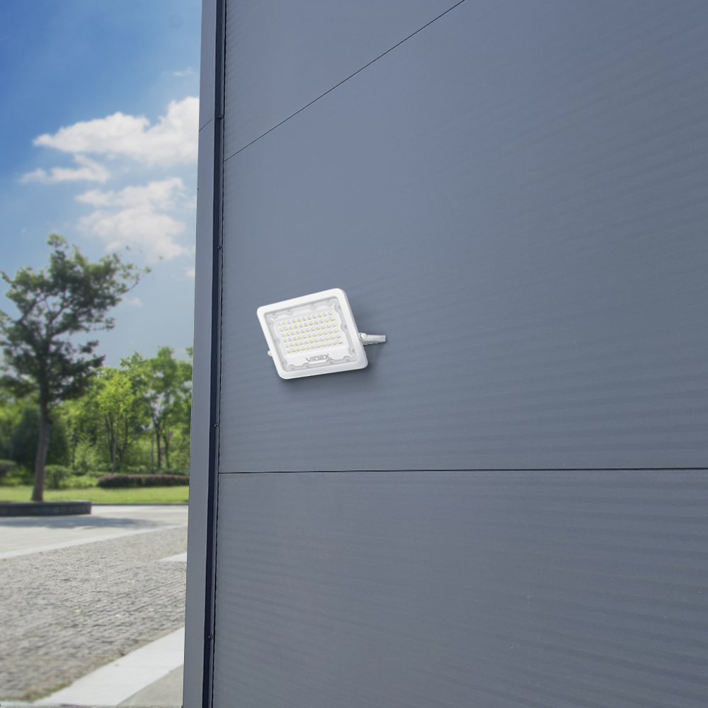 LED прожектор VIDEX 50W 5000K - високотехнологічне джерело світла. Забезпечує рівний світловий потік і максимальну потужність з першої секунди роботи. Цей прожектор можливо використовувати для освітлення і підсвічування рекламних вивісок, конструкцій, автостоянок, гаражів, зовнішнього підсвічування будівель і споруд, спортивних майданчиків, стадіонів, промислових об'єктів, створення світлових ефектів. Його розміри становлять усього 223х160х26мм, оновлена версія має габарити 213х160х26мм.