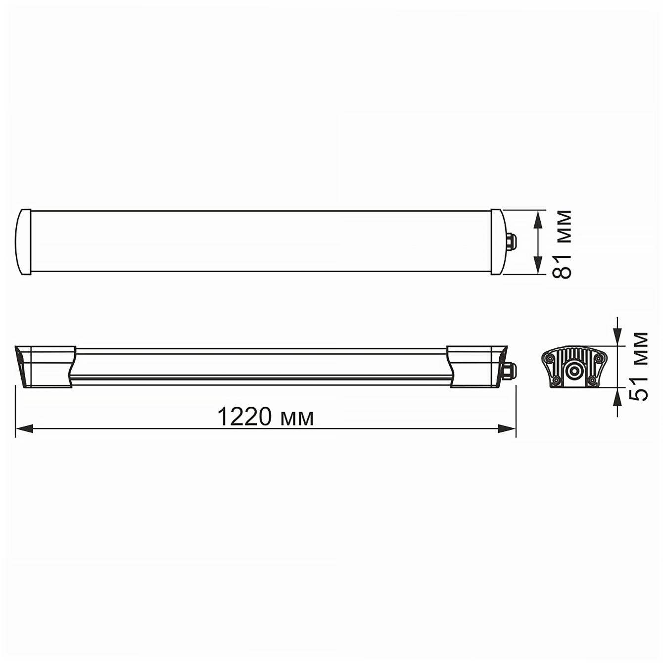 Світлодіодний лінійний світильник не містить ртуті. Герметичний корпус із високоякісного полікарбонату робить даний світильник захищеним від пилу, вологи, ударів. Світлодіоди всередині розміщені так, що дозволяє досягти рівномірного розподілення світла без темних зон. Не підлягає утилізації у вигляді побутових відходів. Всі світильники відрізняються своєю екологічністю. Його розміри становлять 1220x81x51мм.
