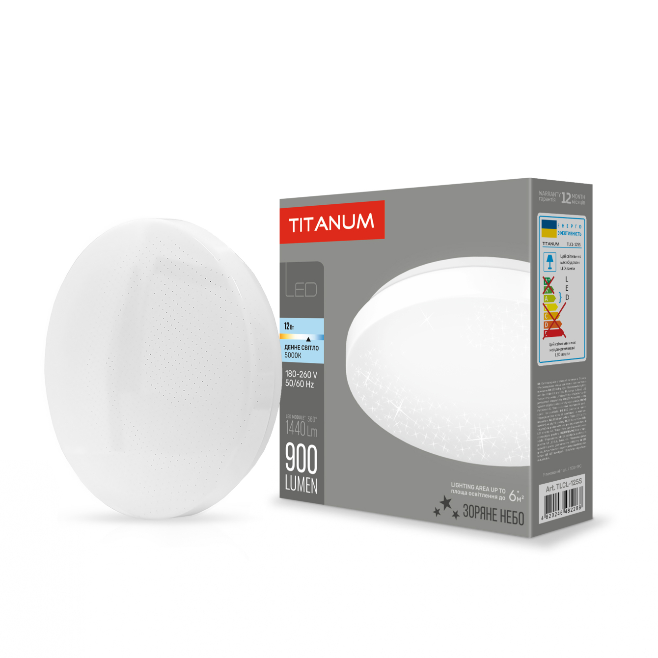 LED світильник настінно-стельовий TITANUM 12W 5000K Зоряне небо - це високотехнологічний освітлювальний прилад, який використовується в житлових приміщеннях в якості основного джерела освітлення. Стильний дизайн перетворює простір під найрізноманітніші завдання користувача. Альтернатива традиційним люстрам та іншим засобам освітлення. Встановлюється як на горизонтальній поверхні, так і на вертикальній. Після монтажу не вимагає обслуговування протягом всього періоду експлуатації.