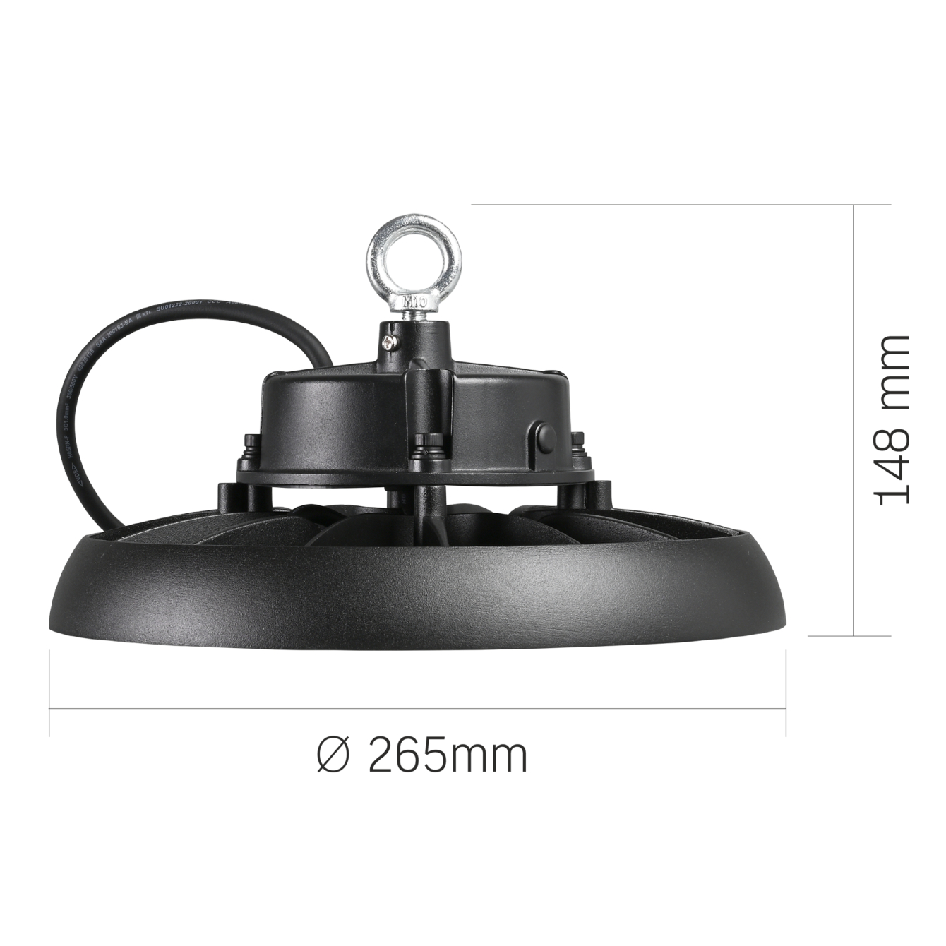 Світильник High Bay володіє високим захистом від ударів IK07 і високим ступенем пиле - та вологозахисту IP65, такі технічні параметри забезпечують безпечне використання приладу в приміщеннях з підвищеною вологістю або під відкритим небом.