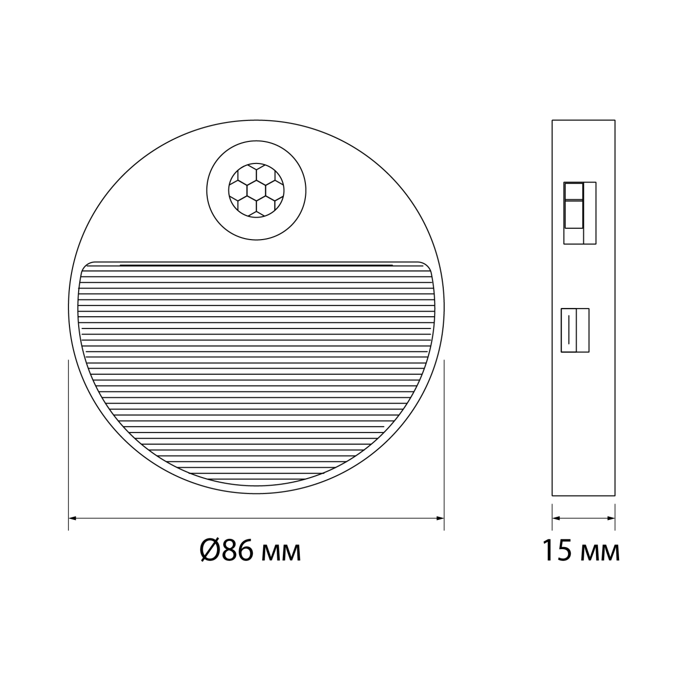 За допомогою повзунка на корпусі світильника вмикається та вимикається світло, активується режим датчика руху.