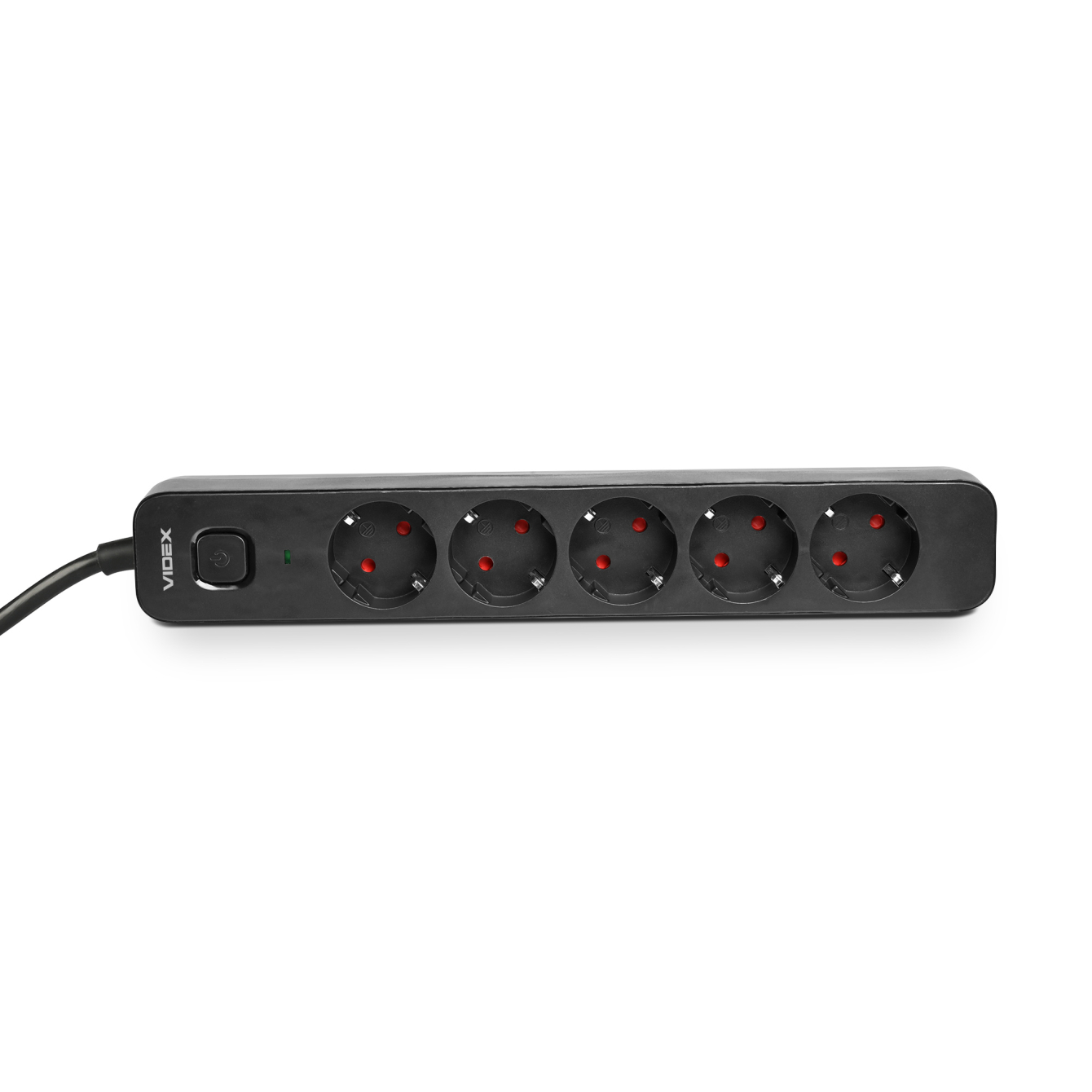 Мережевий подовжувач VIDEX ONCORD з/з 5п 3м (3x1.5мм) з кнопкою Black