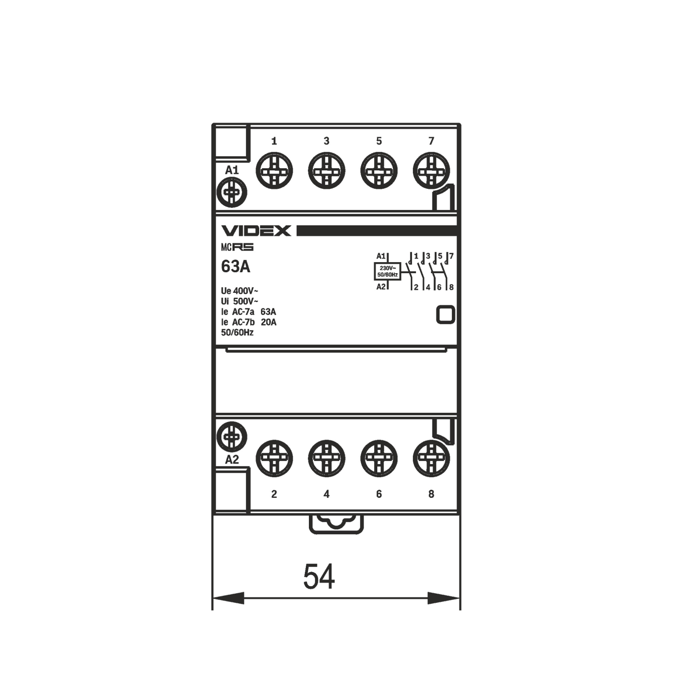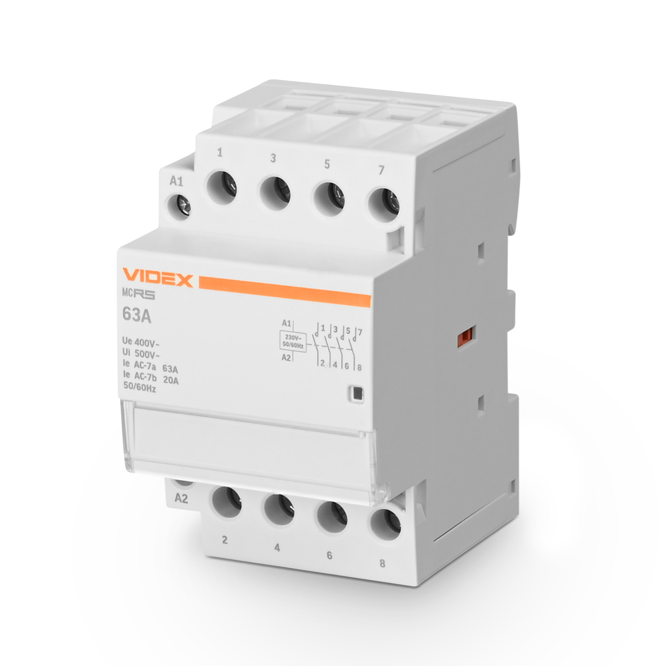 Модульний контактор VIDEX RESIST. Контактор - це електрично-керований перемикач, який використовується для перемикання електричного кола при створенні або розриві з’єднання між джерелом живлення та навантаженням. Призначений для безпосереднього підключення до сильнострумових пристроїв. Використовується для автоматизації процесів в будівлях та спорудах для керування електродвигунами, вентиляцією, освітленням, опаленням та іншими видами навантаження. Не призначений для виконання функцій захисту від коротких замикань. Розрахований на використання не навченими спеціально людьми і не вимагає технічного обслуговування.