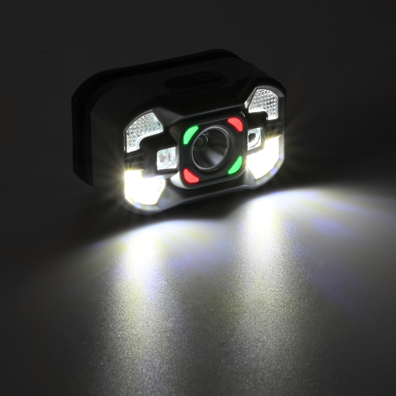 - Увімкнути – одне короткочасне натискання на кнопку ON/OFF у вимкненому стані. У ввімкненому стані по кутах лінзи світяться зелені та червоні індикатори.