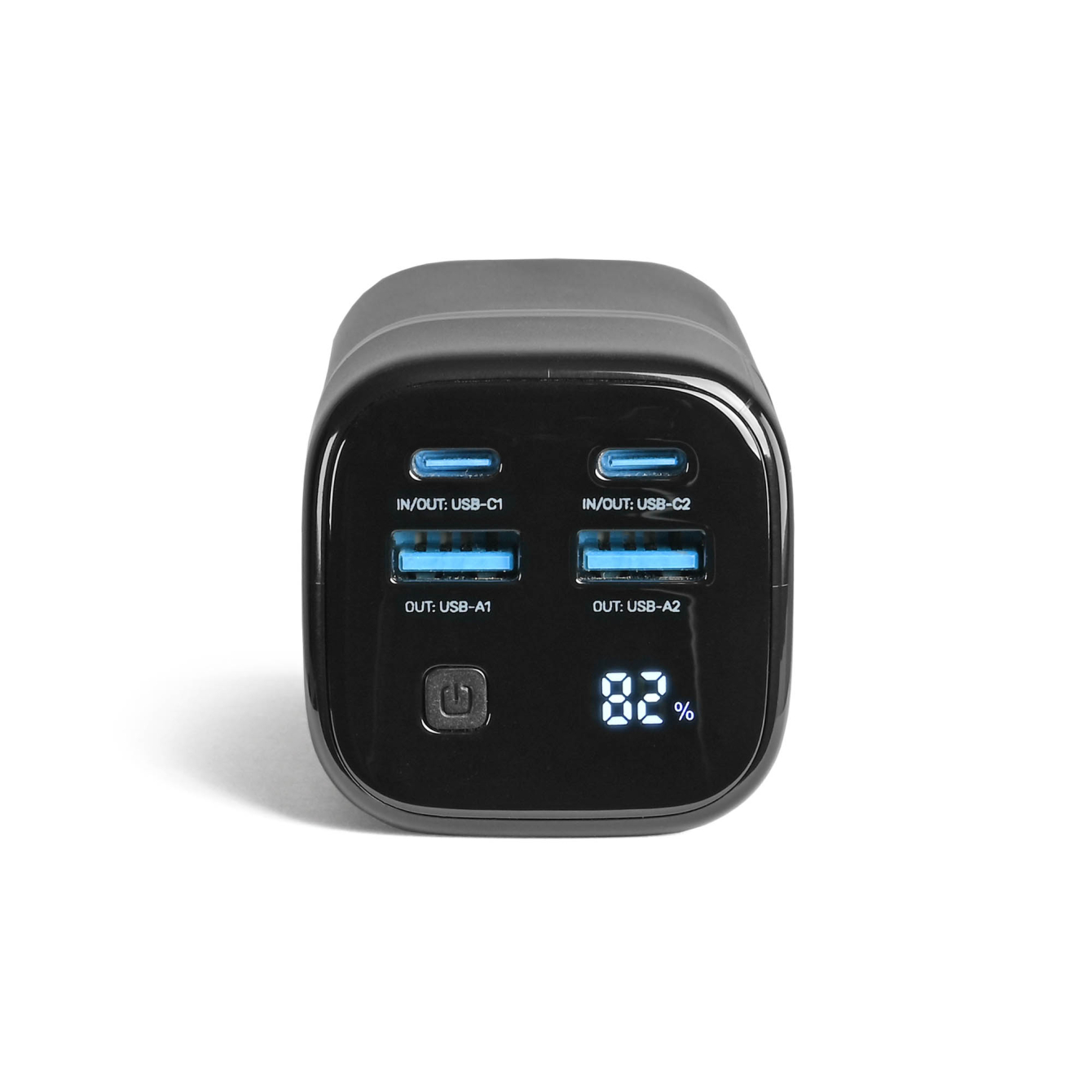 - Вихідна напруга:USB-A 1/2: DC 5-10V/2.25A, 5V/3A, 9V/2A, 12V/1.5A (22.5W); USB-C 1/2: DC 5V/3A, 9V/3A, 12V/3A, 15V/3A, 20V/3.5A (PD70W)