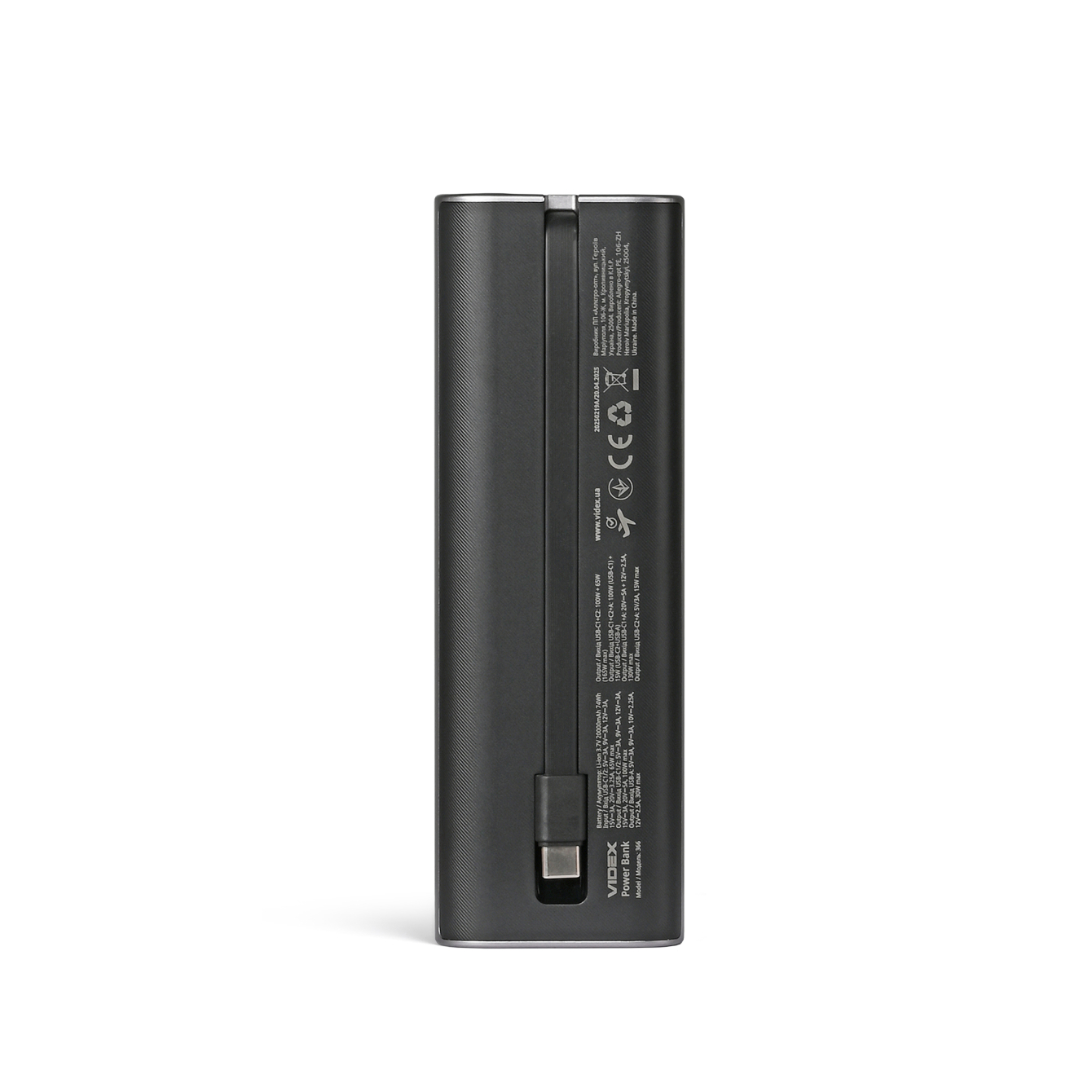 Power Bank VIDEX VPB-366 20000mAh 165W – повербанк з високою потужністю і надшвидкою зарядкою. Ємність становить 20000mAh, а максимальна вихідна потужність - 165W. Акумулятор оснащений літій-іонною батареєю 3.7V 74Wh, що дозволяє заряджати телефони, ноутбуки, планшети та інші гаджети з високою швидкістю завдяки підтримці технології Power Delivery (PD) до 100W.