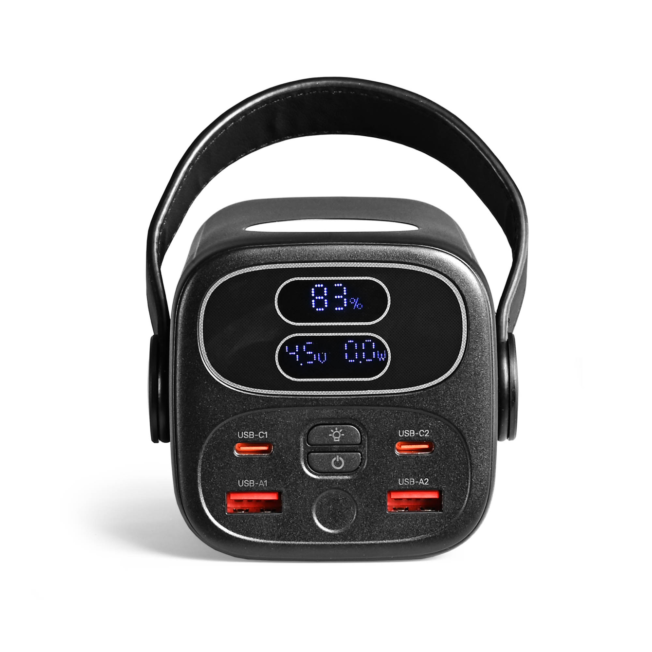 - Вихідна напруга:USB-A 1/2: DC 5-10V/2.25A, 5V/3A, 9V/2A, 12V/1.5A (22.5W); USB-C 1/2: DC 5V/3A, 9V/3A, 12V/3A, 15V/3A, 20V/3.25A (PD65W)