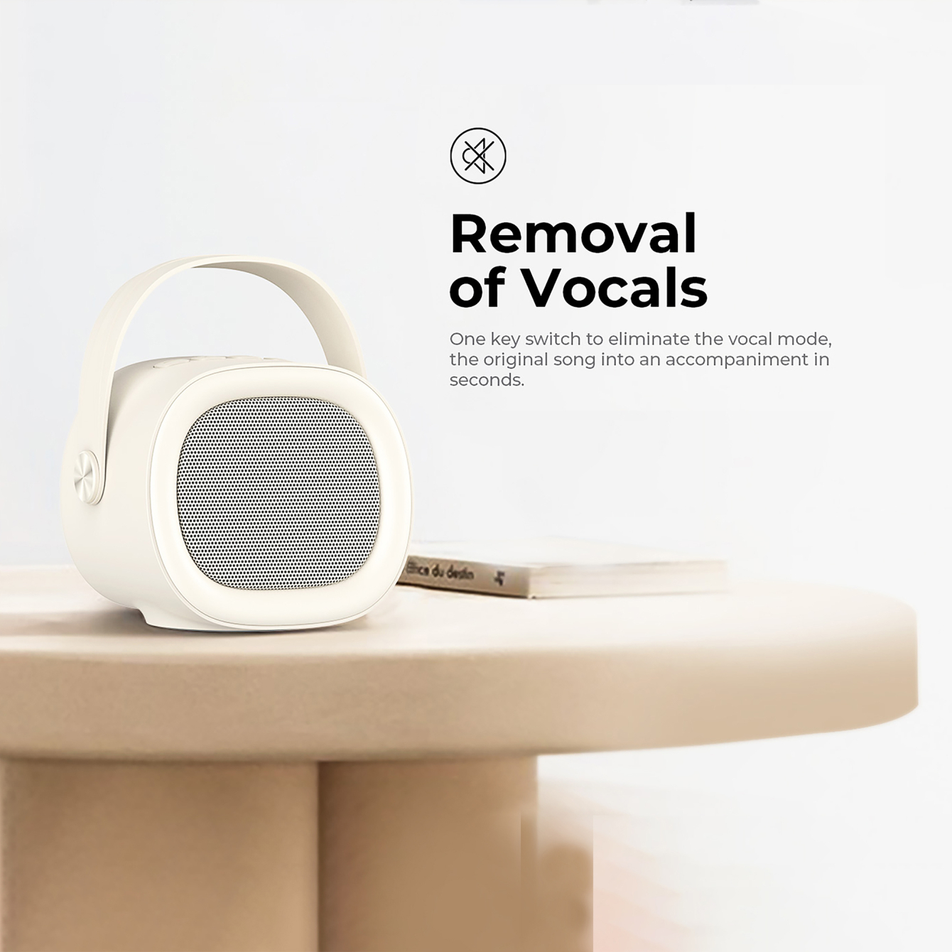 Колонка має 5 видів голосів та функцію видалення голосу з аудіозапису. Мікрофон, який входить до комплекту з колонкою, підключається до неї через 2.4GHz. Окрім того, в комплект входять зарядний та аудіо кабель, інструкція користувача, гарантійний талон.