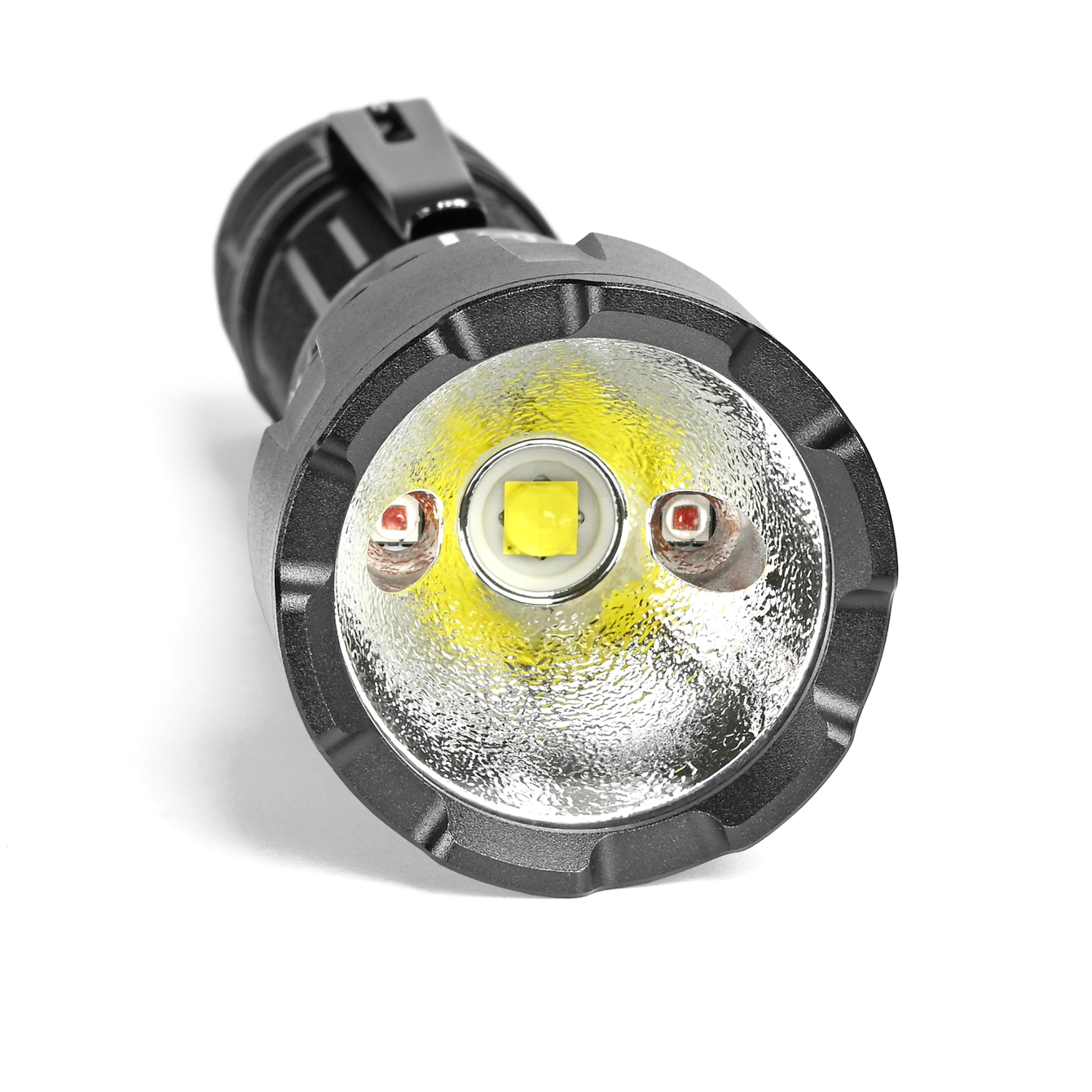 Відмінно захищений і адаптований під використання в складних та екстремальних умовах. Без проблем витримує механічні навантаження, падіння з висоти. Може падати з висоти 1м і при цьому не пошкодитись. Ліхтар має стандарт захисту від пилу та вологи – IP68.