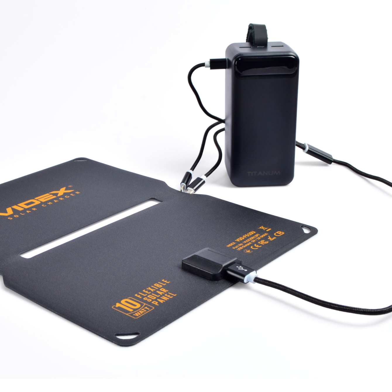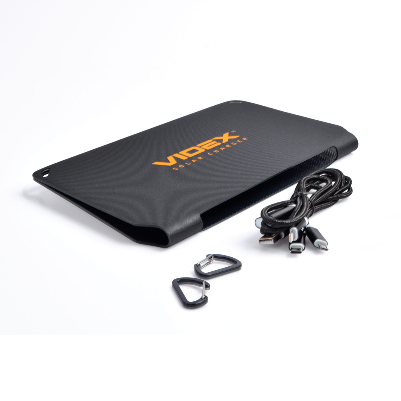 Портативний сонячний зарядний пристрій VIDEX F510U 10W, який може перетворювати сонячне світло на електрику для негайного виробництва відновлюваної енергії. Він може заряджати різноманітні пристрої, такі як мобільний телефон, планшет, павербанк тощо.