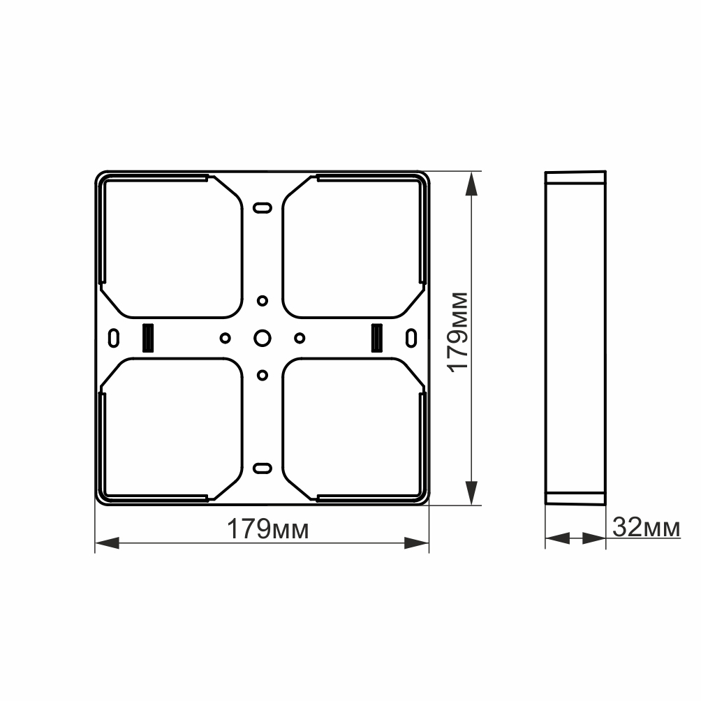 - Розміри:179mm x 179mm x 32mm