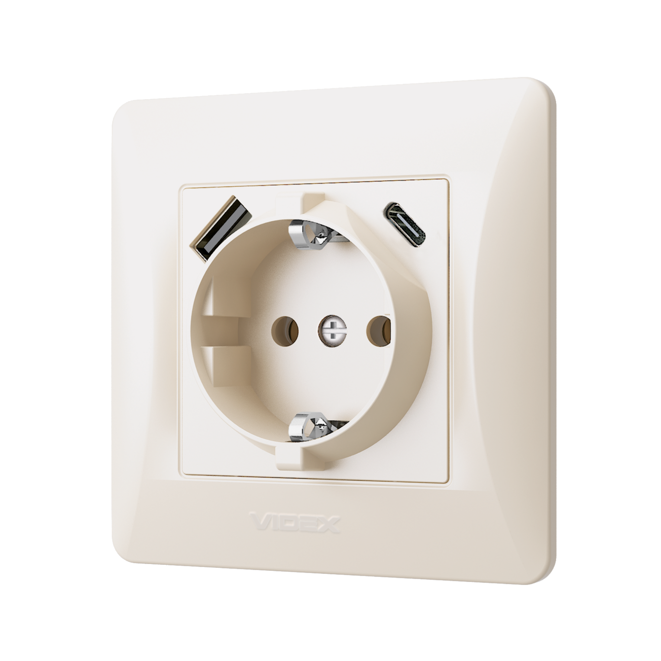Розетка одинарна із заземленням з USB+USB-C кремова VIDEX BINERA
