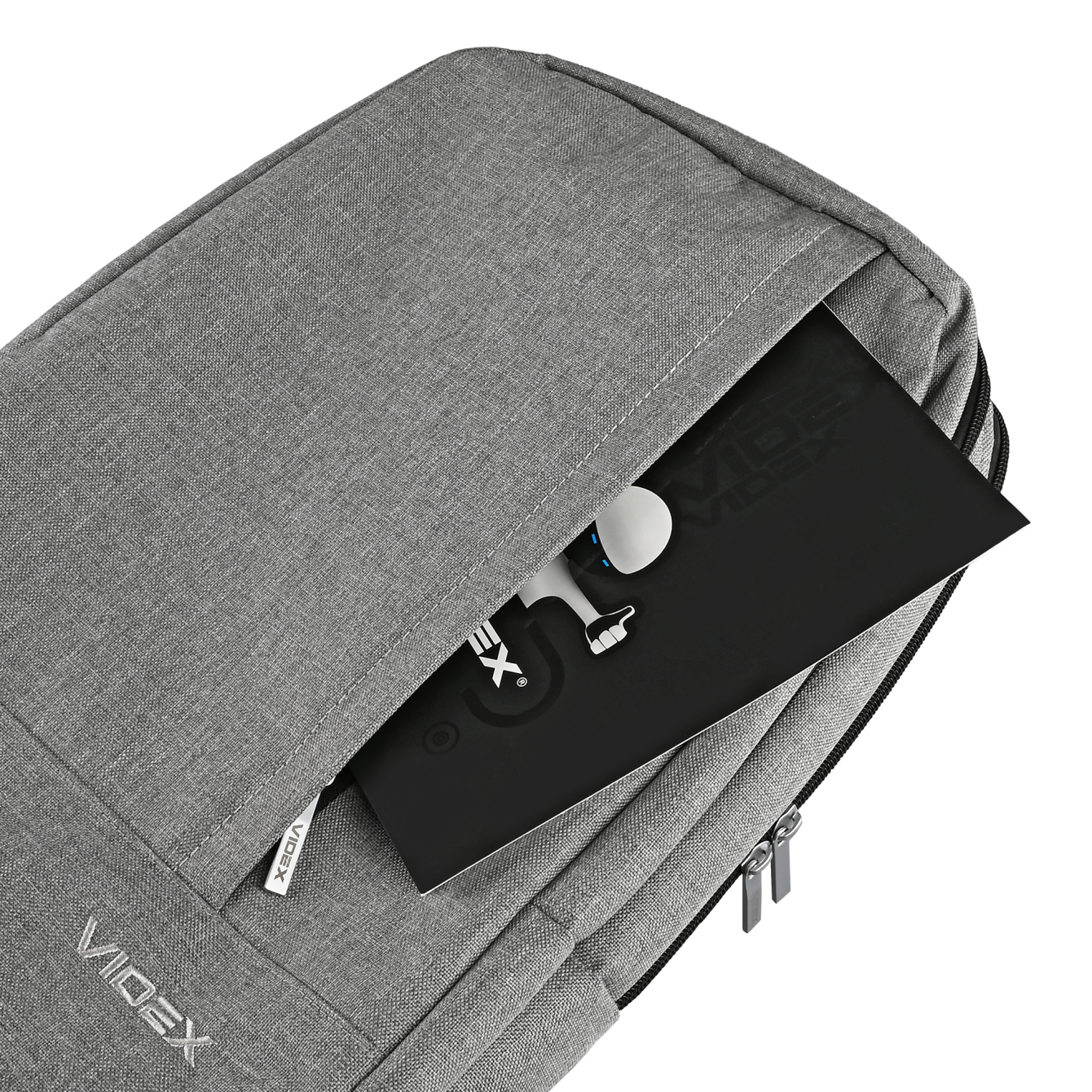 Рюкзак VIDEX VB-0020 - це стильний і зручний рюкзак міського стилю (Urban style) призначений для перенесення ноутбуків з діагоналлю екрану до 15,6 дюймів. Це універсальна модель, яка має стильний дизайн та практичний підхід в реалізації. В ньому є два основних відділи та один додатковий під документи. В основні відділи можна покласти речі з якими постійно перебуває сучасна людина, це: ноутбук; планшет; повербанк; діловий щоденник або записник; відділ для дрібних речей, куди можна покласти - канцелярію, флешку чи карту пам'яті, кабель для зарядки мобільного пристрою чи адаптер живлення; окремий відділ попереду під документи або телефон з швидким доступом, але при цьому надійно закритий. Також можна вмістити пляшку з водичкою, ланчбокс, міні аптечку, жіночу косметичку та інші речі за необхідності. Рюкзак виготовлений з міцного водонепроникного нейлону. Це практичний матеріал, стійкий до зносу і розрахований на тривалу експлуатацію. На дотик приємна міцна тканинна має ергономічні регульовані лямки з сітковим покриттям і м'якою підкладкою, а також ортопедична спинка забезпечать максимум комфорту при щоденному використанні. Для носіння рюкзака в руці передбачена надійна ручка. Основний відділ в якому розташовано місце під ноутбук, відокремелений від інших речей, що додатково уберігає вашу техніку під випадкових подряпин та іншого впливу. Блискавка має надійні металеві замки, а дно рюкзака додатково посилене.