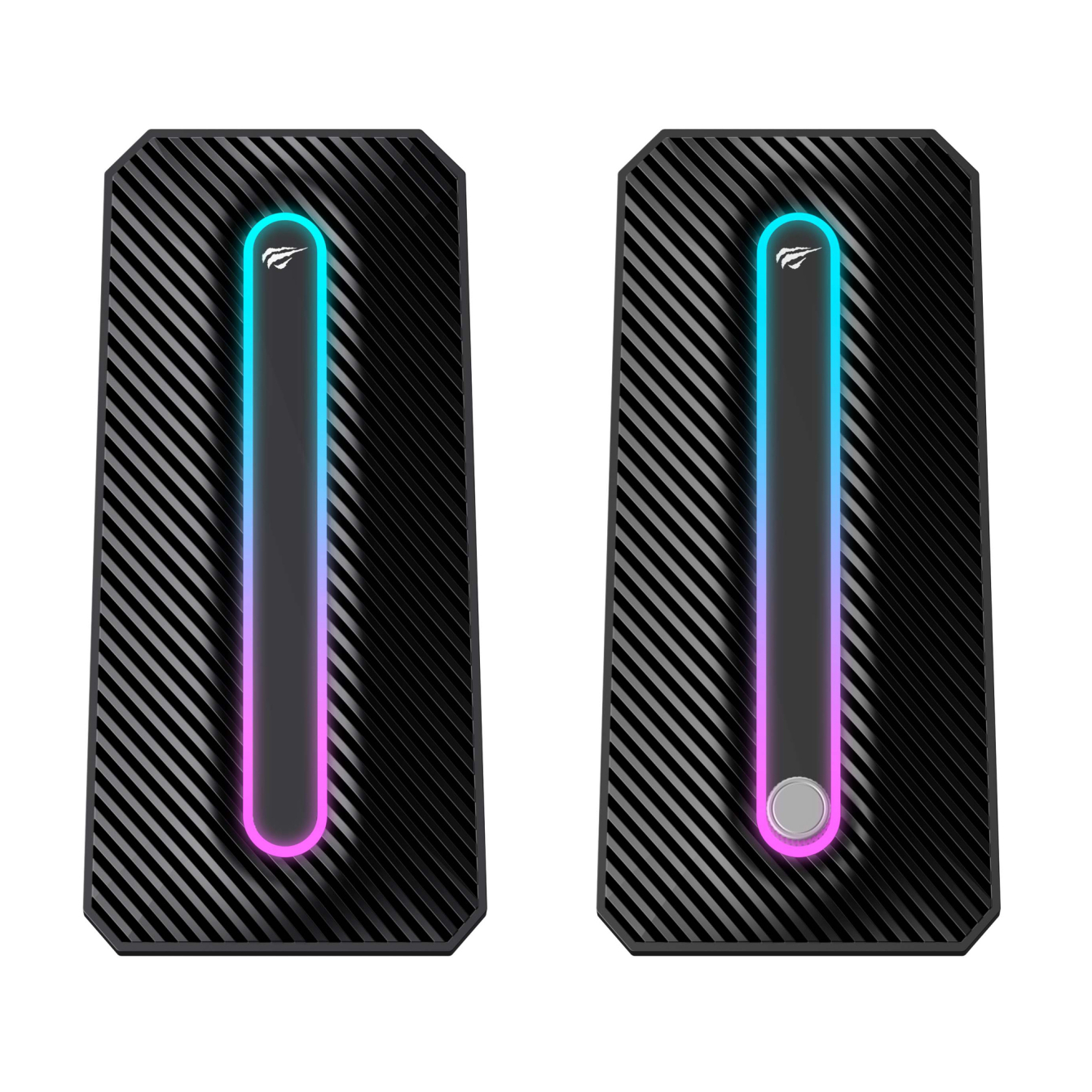 Ігрові колонки HAVIT SK216 – це комплект акустики із кутовим дизайном, який забезпечує кращу спрямованість звуку і стильно виглядає в інтер’єрі. Підключаються через роз'єм USB для підсвітки та живлення, а за допомогою входу AUX (3.5мм) – для аудіо відтворення.