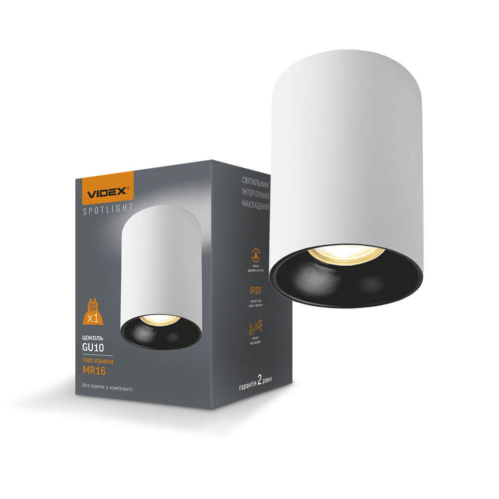 Світильник VIDEX під лампу GU10 накладний Білий + Чорний рефлектор VL-SPF14A-WB