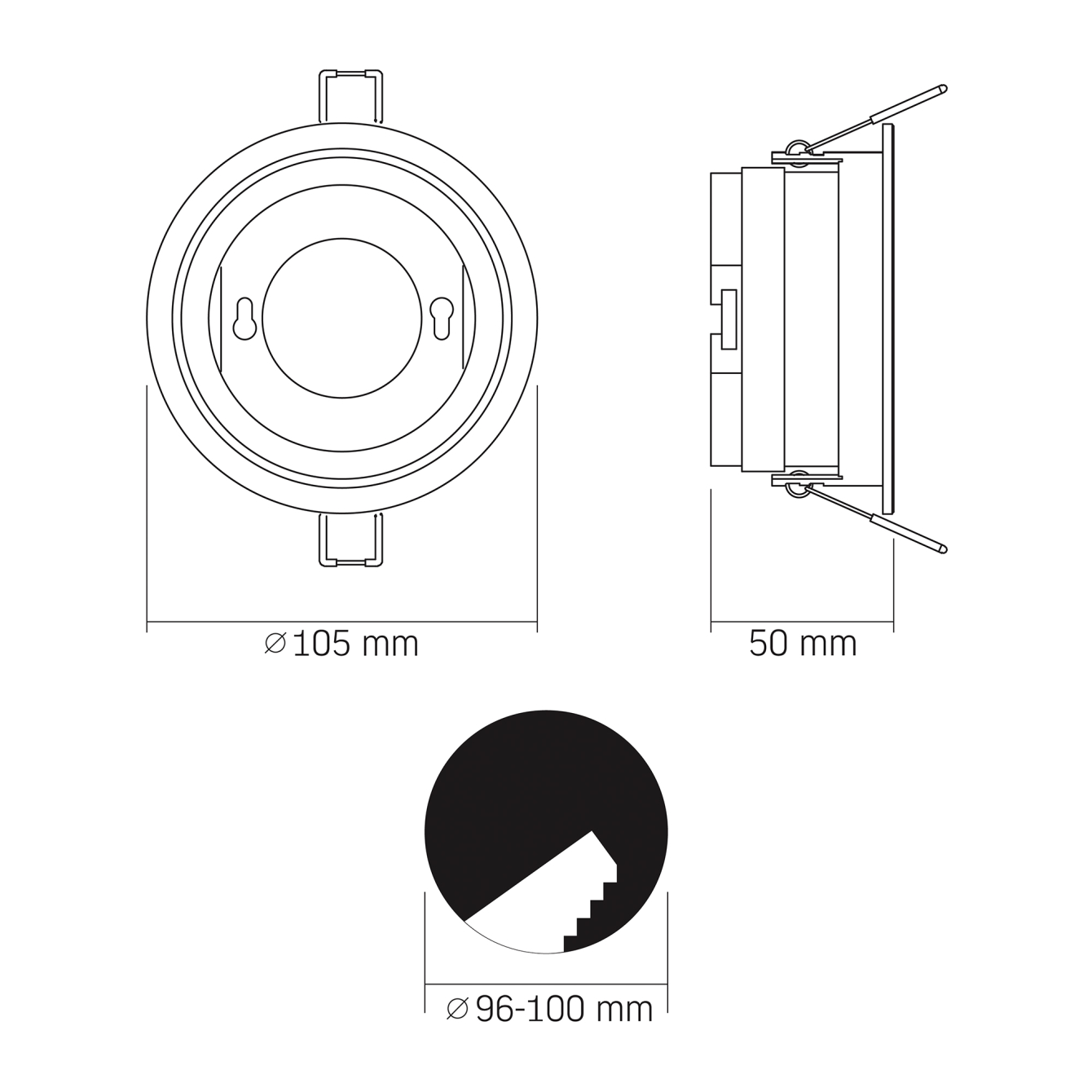 - Діаметр врізного отвору:96-100 mm