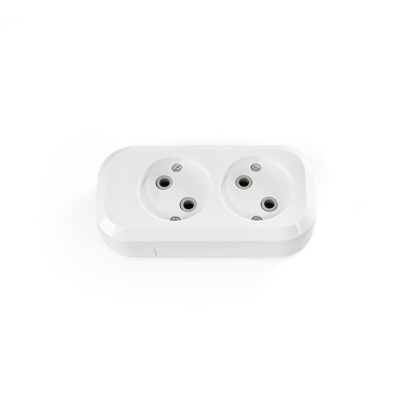 Колодка подовжувача без заземлення 2 гнізда біла TITANUM STANDARD
