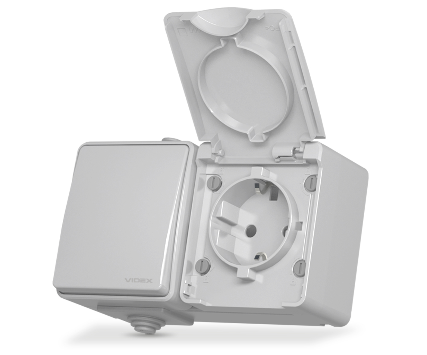 IP65 Розетка зовнішня одинарна із заземленням та вимикачем одноклавішним сіра VIDEX BINERA
