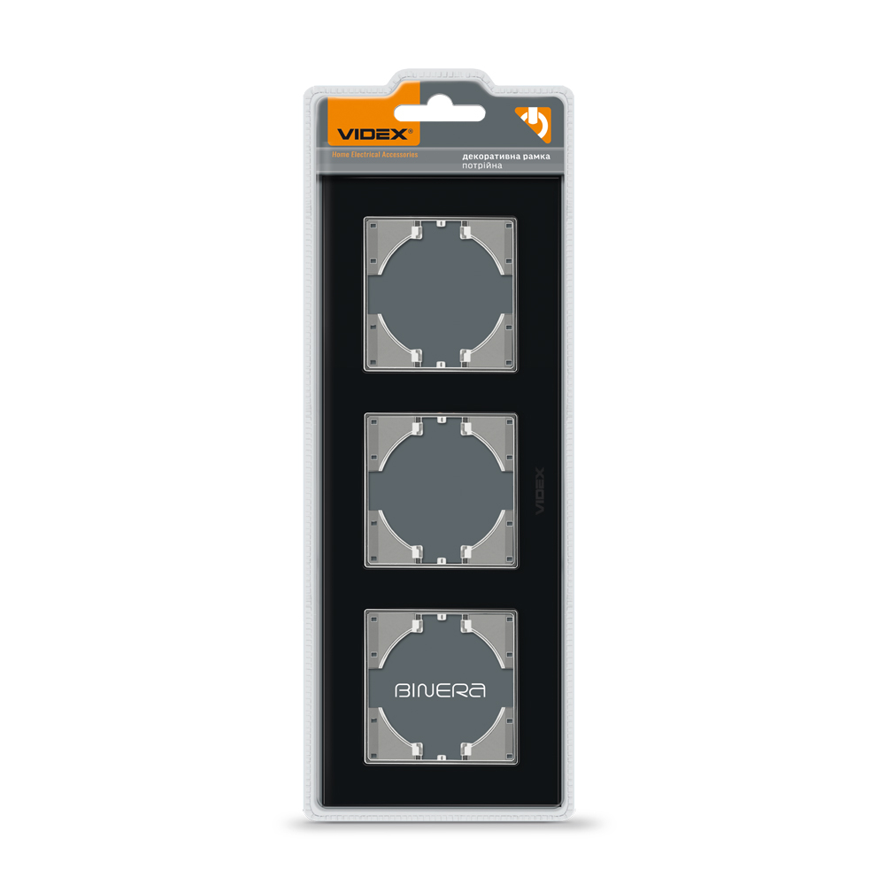 Рамка чорне скло на 3 місця горизонтальна VIDEX BINERA