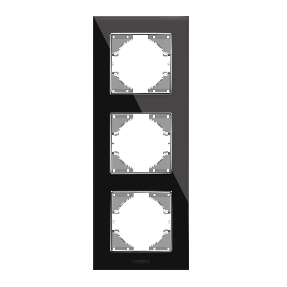 Рамка чорне скло на 3 місця вертикальна VIDEX BINERA