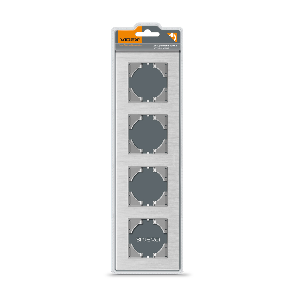 Рамка срібний алюміній на 4 місця горизонтальна VIDEX BINERA