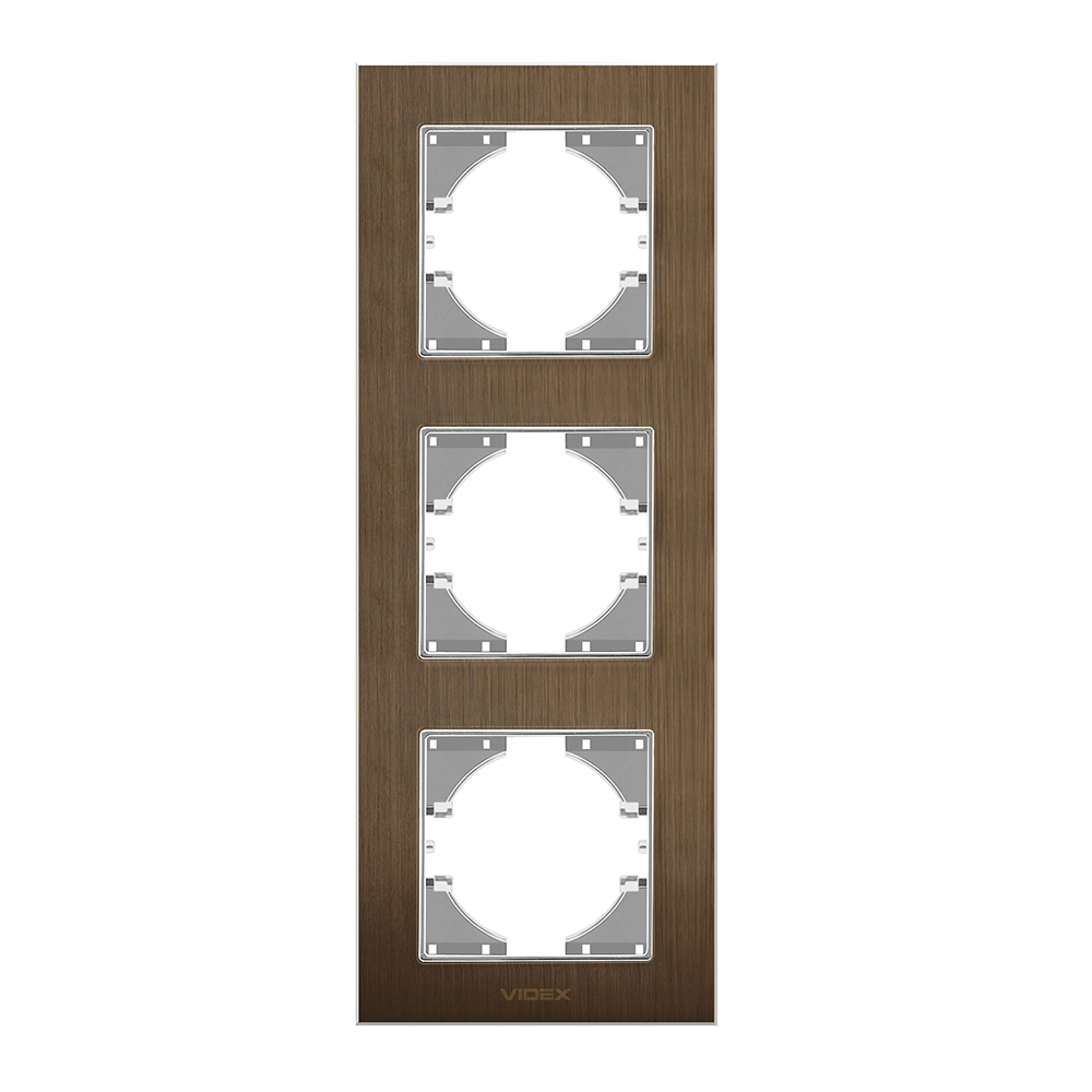 Рамка шоколадний алюміній на 3 місця вертикальна VIDEX BINERA