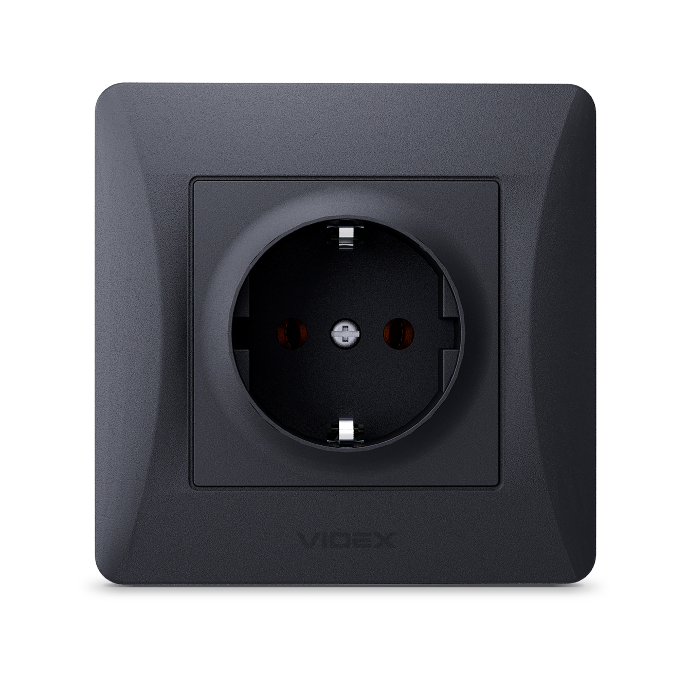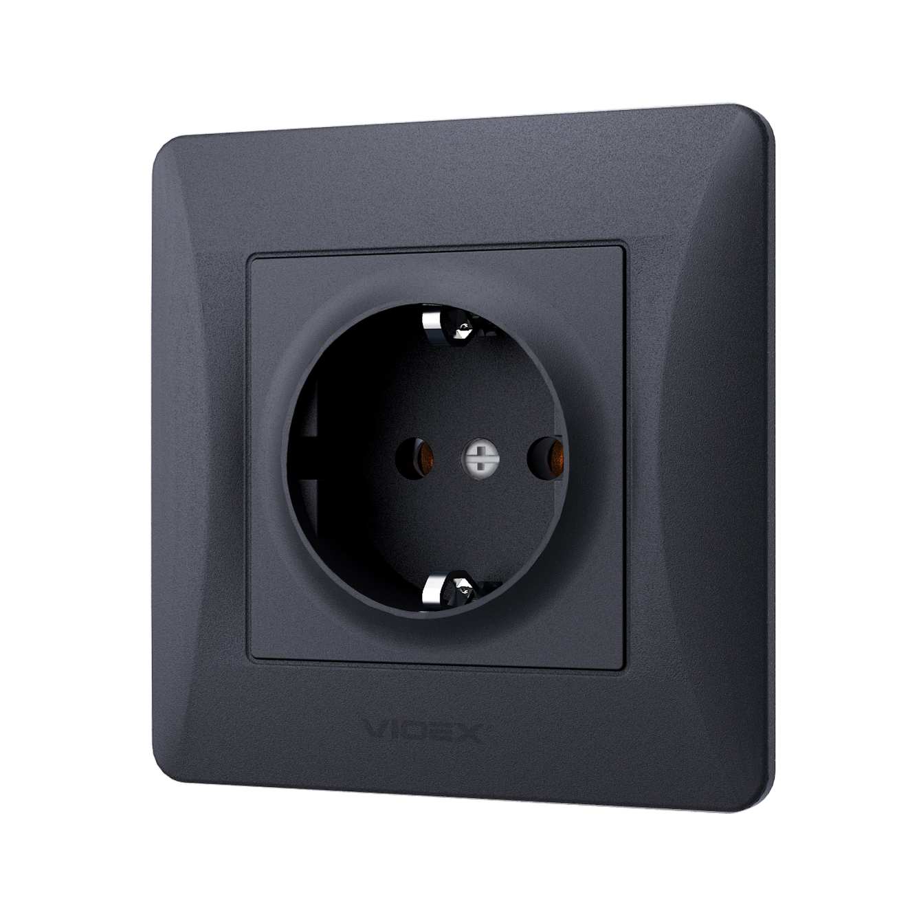 Розетка одинарна із заземленням чорний графіт VIDEX BINERA