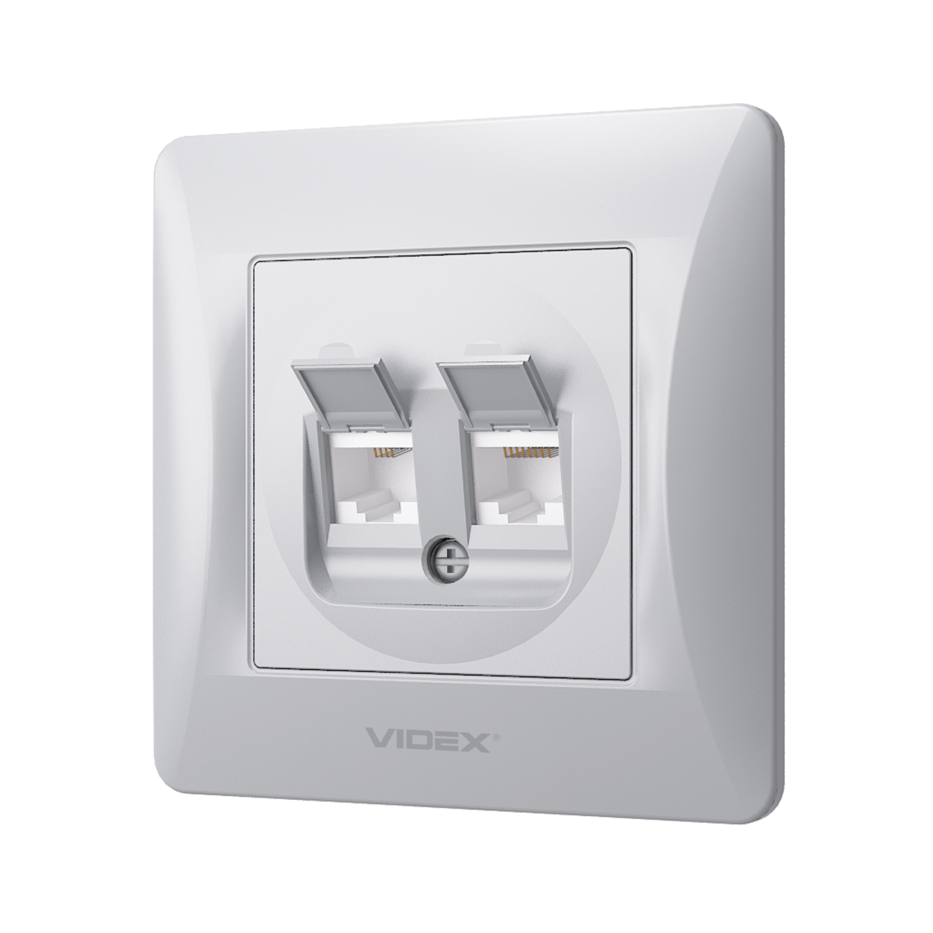Розетка CAT6+CAT3 подвійна срібний шовк VIDEX BINERA