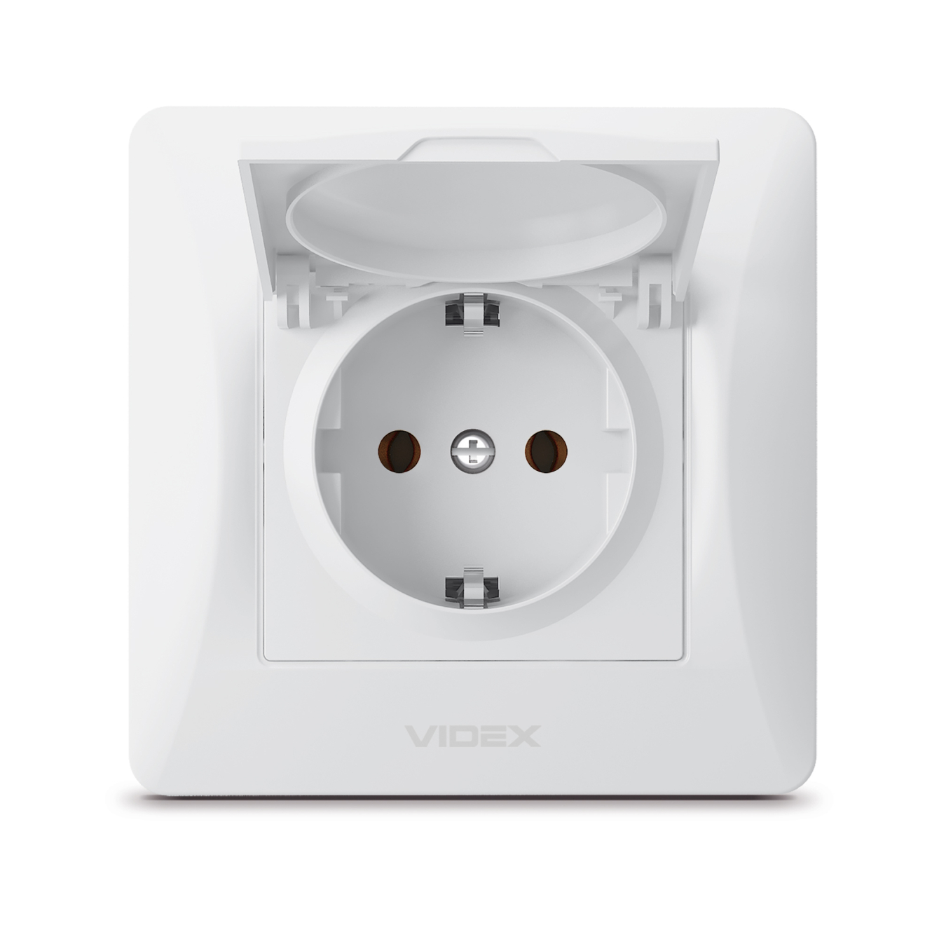 Розетка одинарна із заземленням та кришкою біла VIDEX BINERA