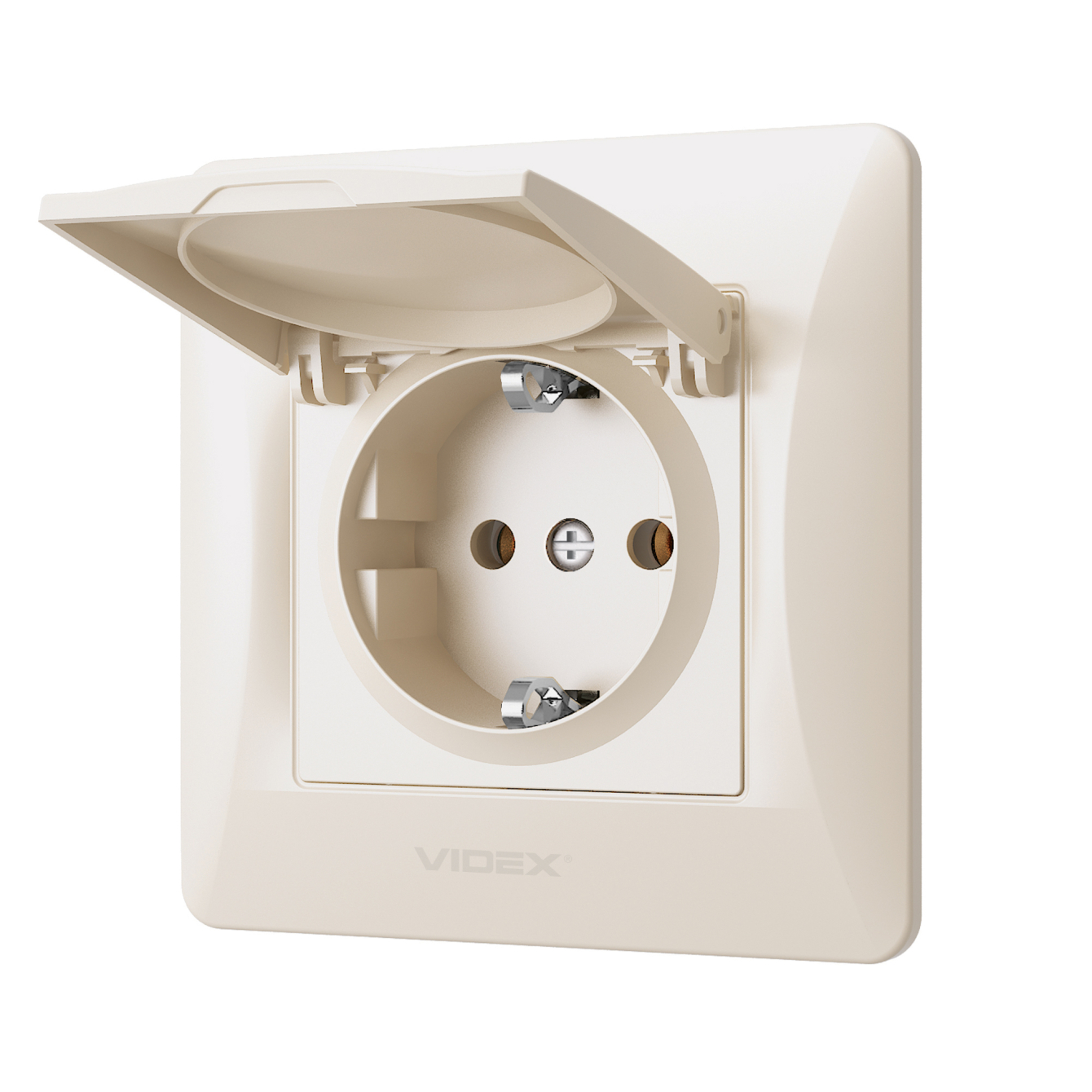 Розетка одинарна із заземленням та кришкою кремова VIDEX BINERA