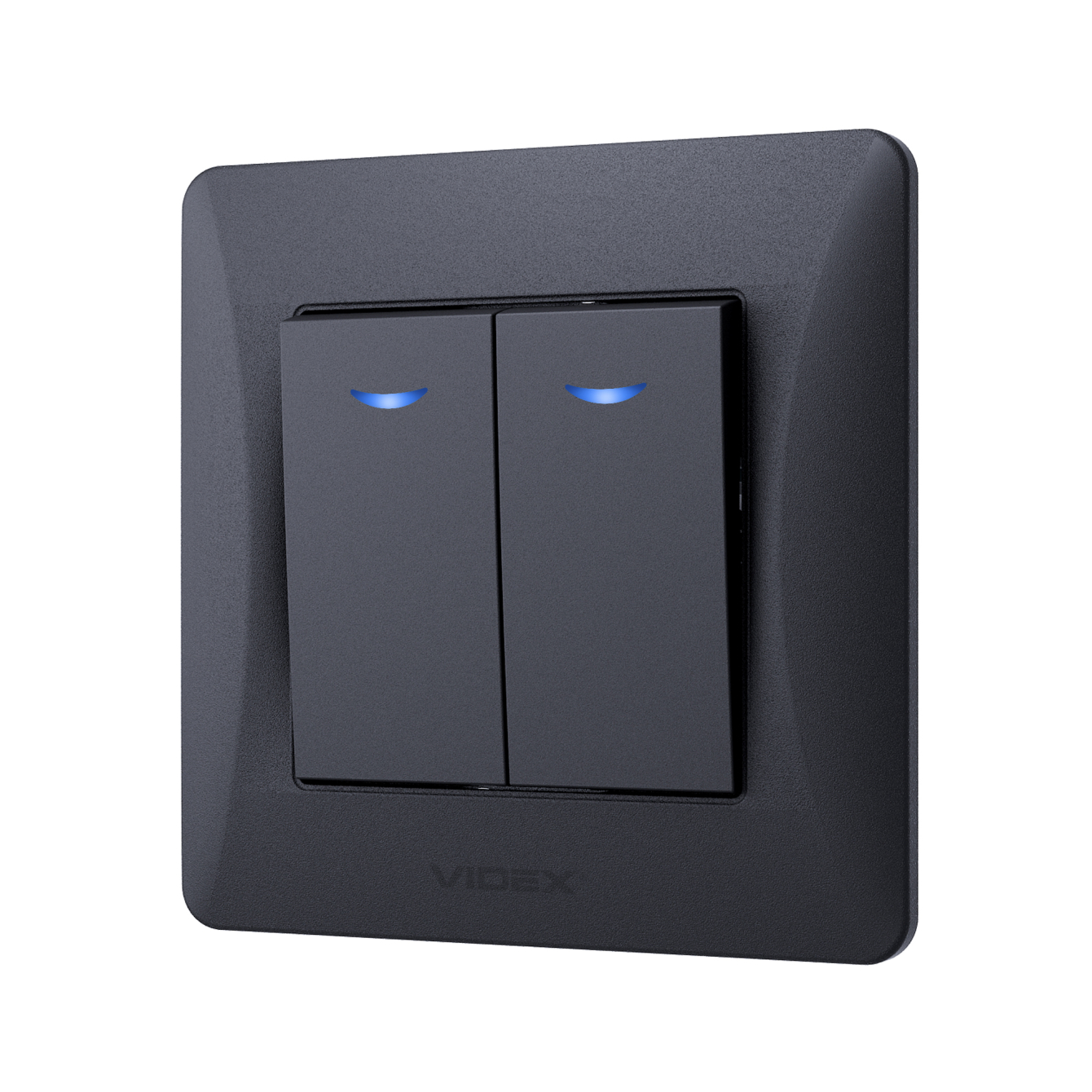 Вимикач двоклавішний з підсвіткою чорний графіт VIDEX BINERA