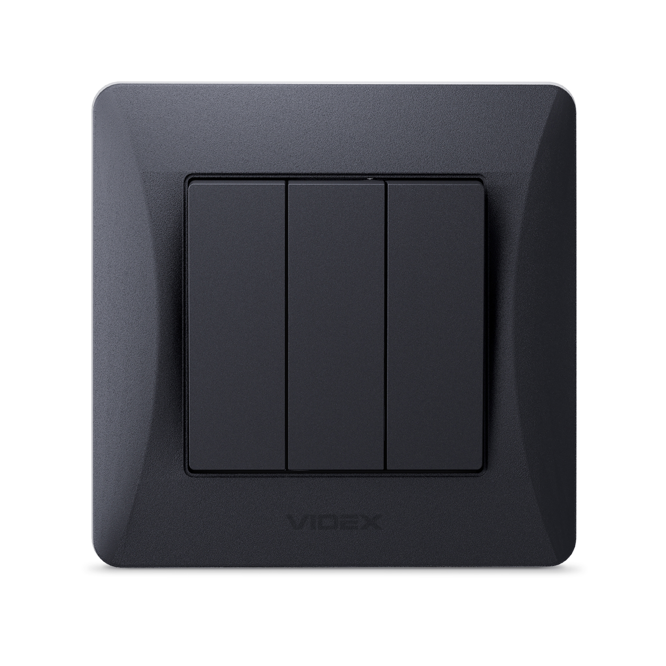 Вимикач трьохклавішний чорний графіт VIDEX BINERA
