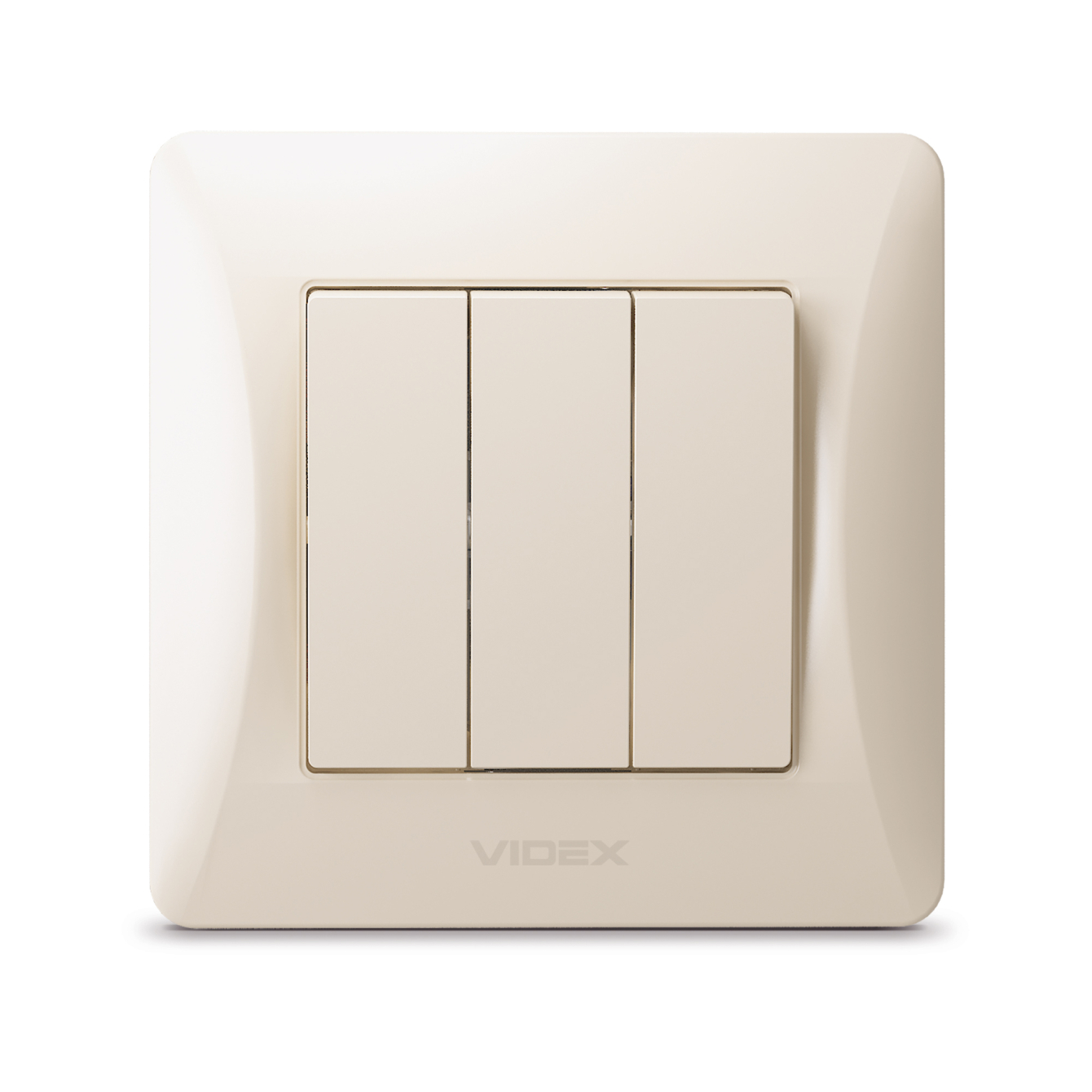 Вимикач трьохклавішний кремовий VIDEX BINERA