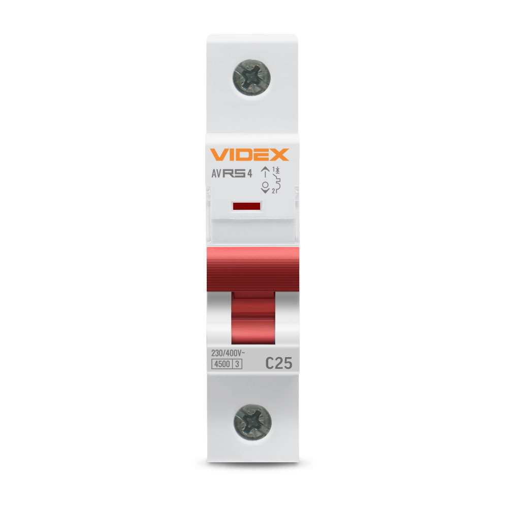 Автоматичний вимикач RS4 1п 25А С 4,5кА VIDEX RESIST