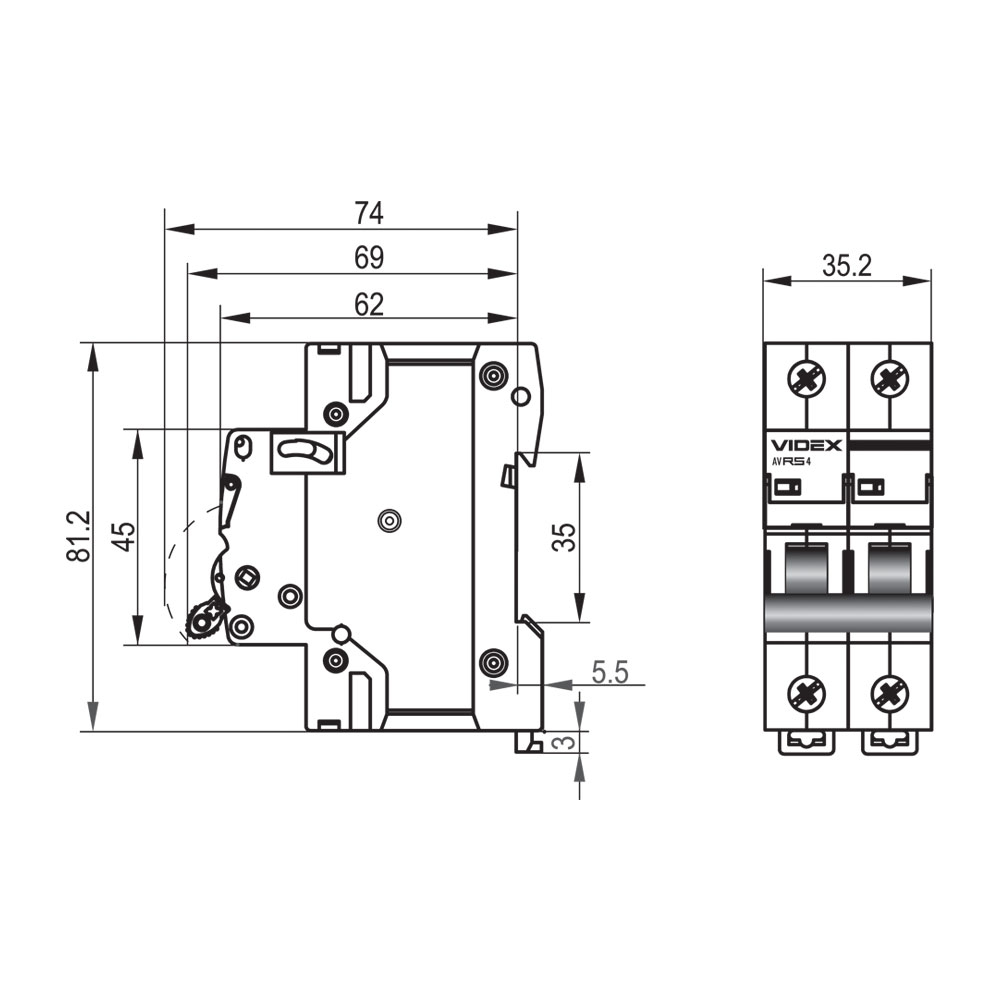 Автоматичний вимикач RS4 2п 20А С 4,5кА VIDEX RESIST