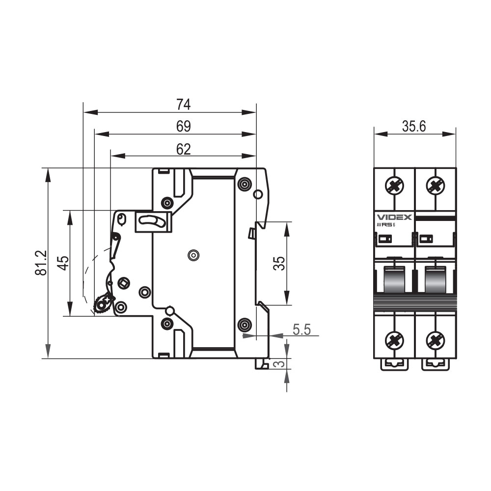 Автоматичний вимикач RS6 2п 63А 6кА С VIDEX RESIST