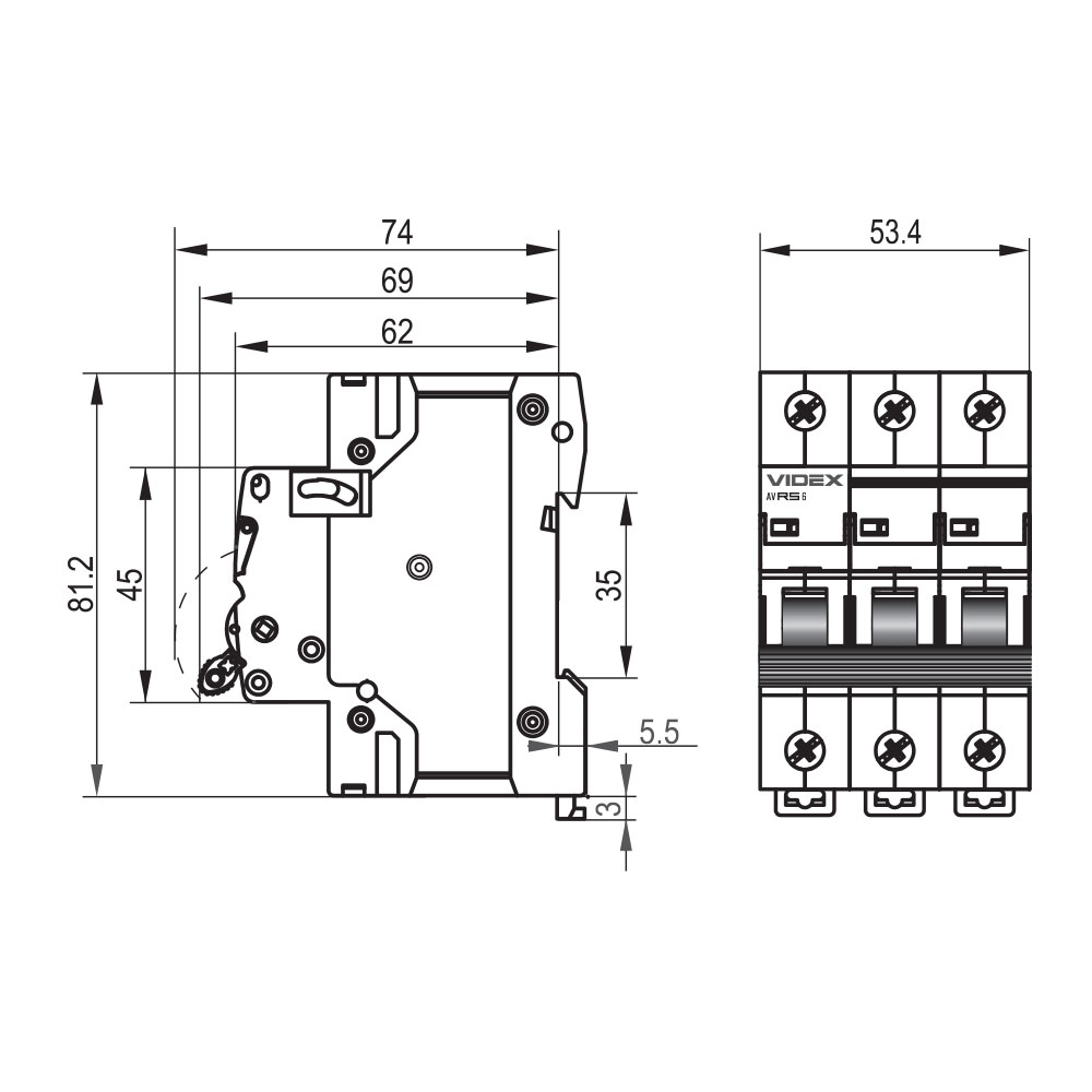 Автоматичний вимикач RS6 3п 63А 6кА С VIDEX RESIST